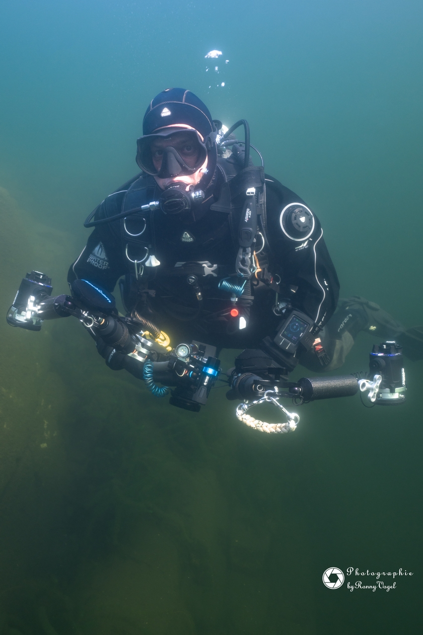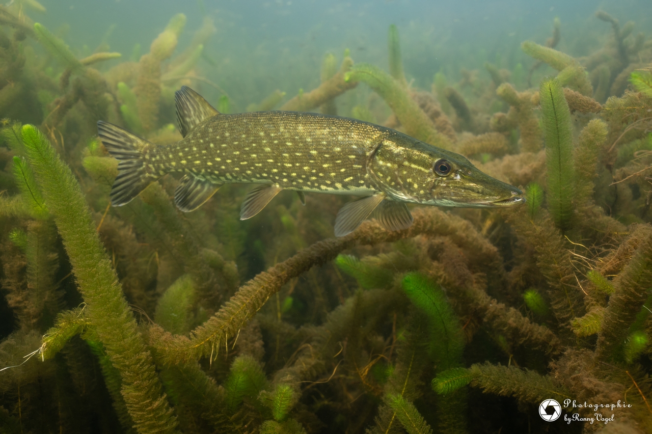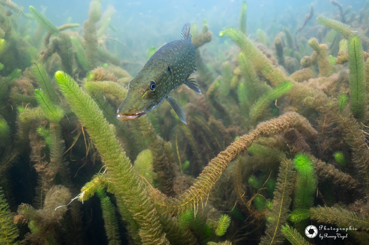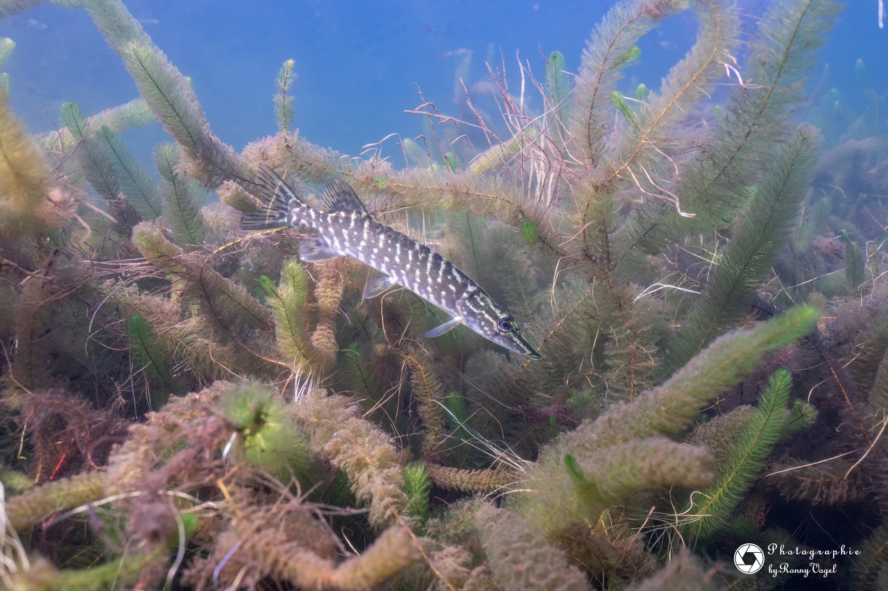 Er kündete, im Wasser schwebend und rotierend, in verschiedenen Farben vom ausgehenden Sommer und bunten Herbst in unserer Region. Auch außerhalb des Steinbruchs boten die Früchte und Blätter der Gehölze farbenfrohe Impressionen. Untere Wasser konnten wir erneut vielfältige Fische in großer Menge beobachten. Karpfen und Schleie wühlten, Hechte und Flussbarsche jagten. Aber nicht alle Rotaugen hatten für ihre Mäuler die passende Größe und blieben unbehelligt. Auch ein Wels kreuzte wieder mehrfach unsere Route.