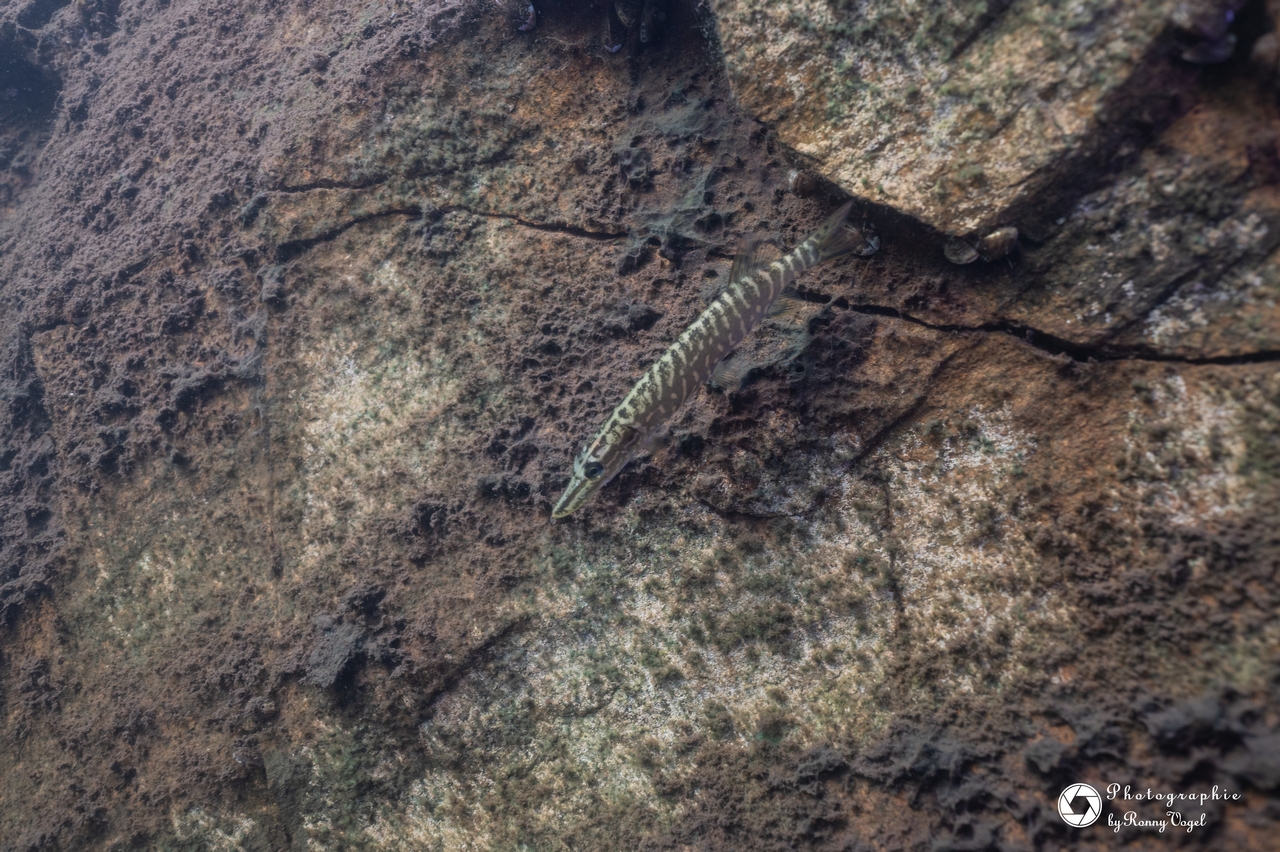 In der Nähe der Steilwände des Steinbruchgewässers war er in dieser Jahreszeit wieder öfter zu beobachten: der „Herbstbunte Haselberg-Strudelwurm“.