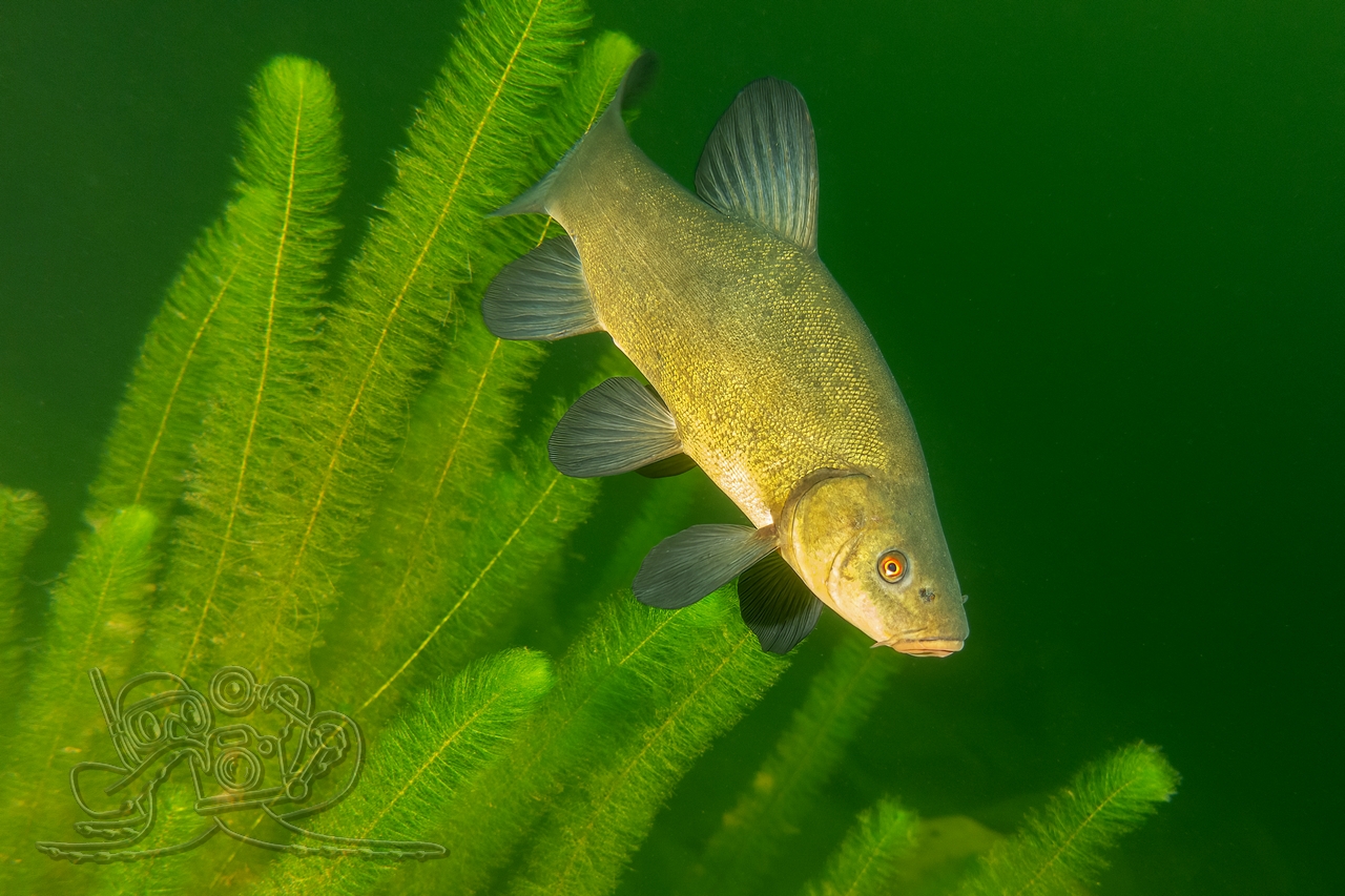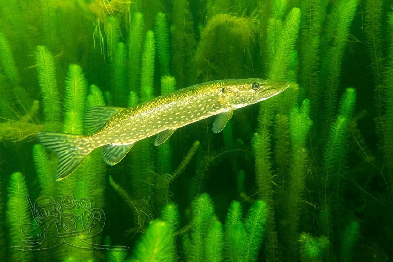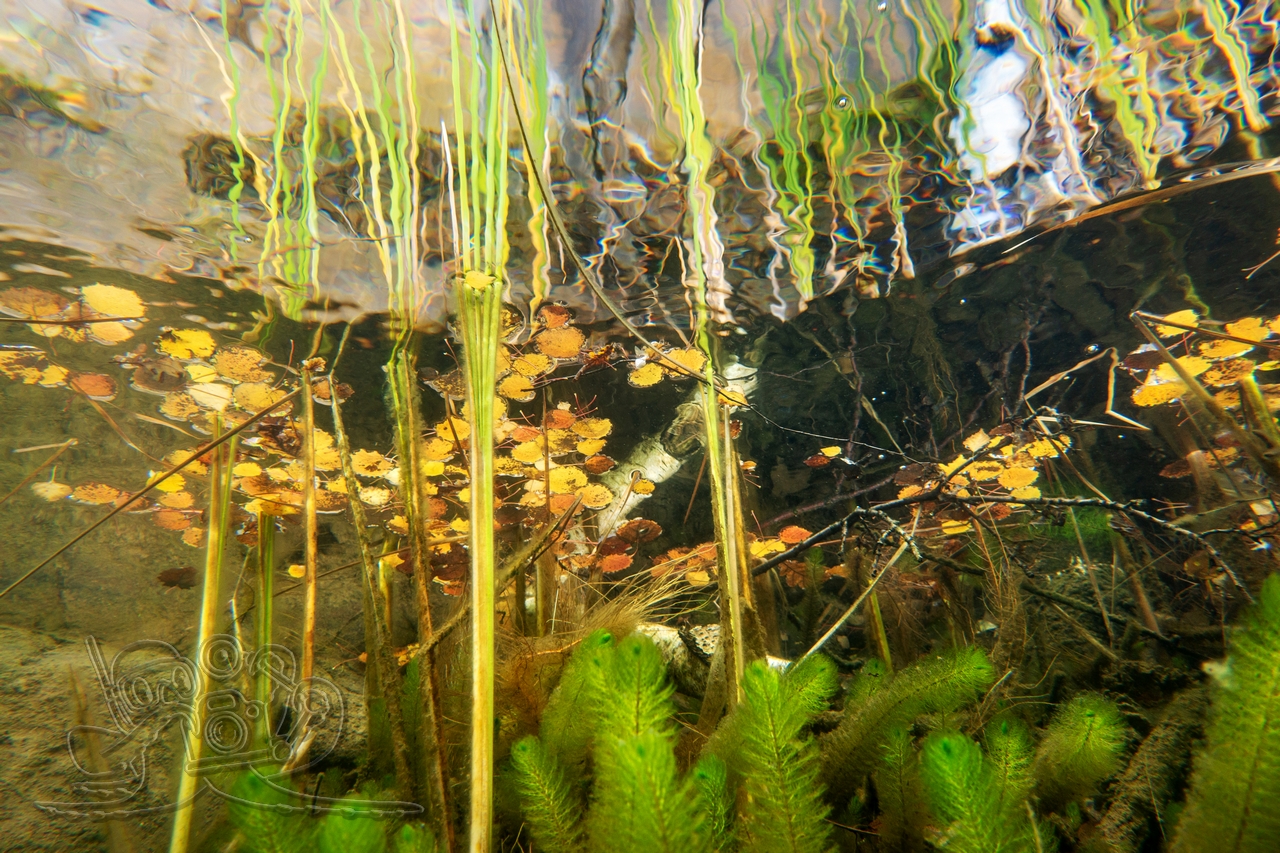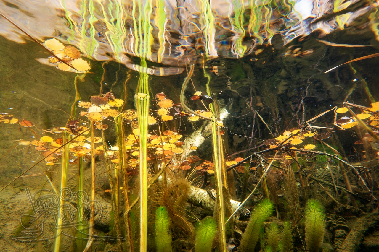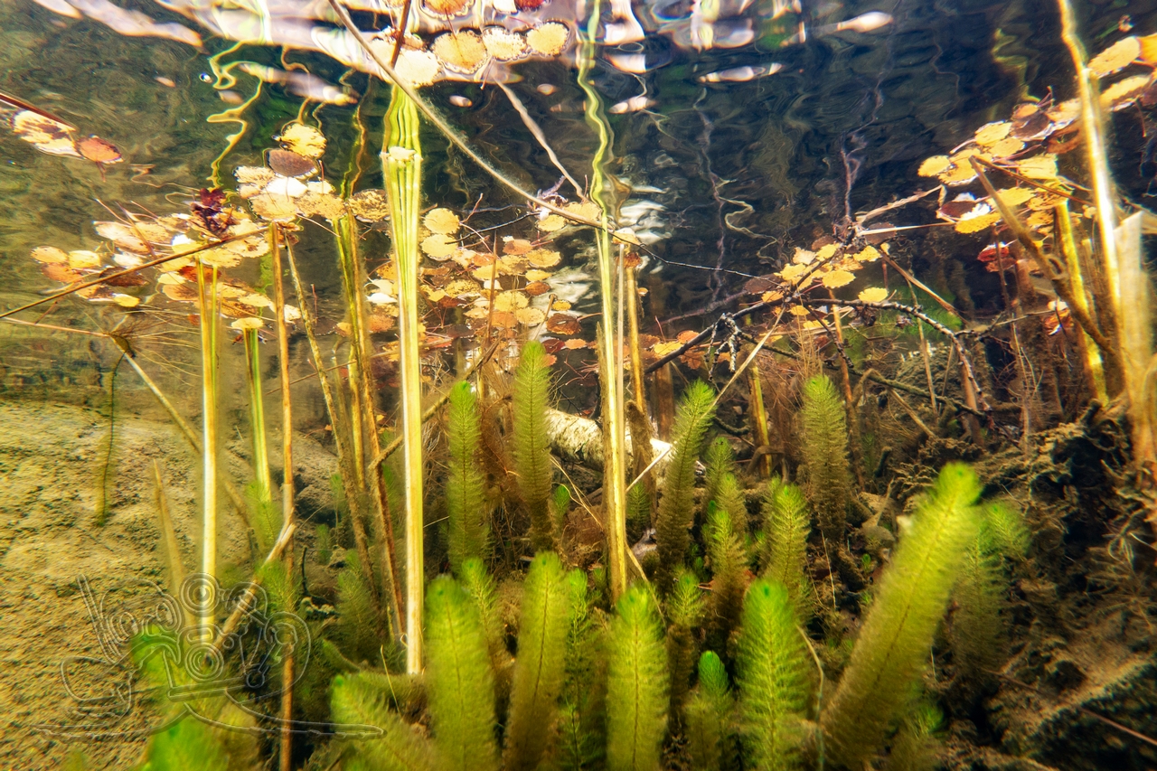 Über den Landestauchsportverband erhielten wir die Meldung eines naturinteressierten Tauchers von einem Wasserschlauch-Standort in unserem Verbandsgewässer. Bisher waren uns nur drei Standorte, zumeist mit Einzelpflanzen, bekannt. So machten wir uns erneut auf die Suche und fanden tatsächlich an einem der der Standorte mehrere Pflanzen. Dazu gab es reichlich Hechte, Schleie, Flussbarsche und Rotaugen, aber schon deutlich weniger Karpfen. Bunt zeigte sich auch der Haselberg über Wasser: Der Herbst präsentierte sich von seiner schönen Seite.