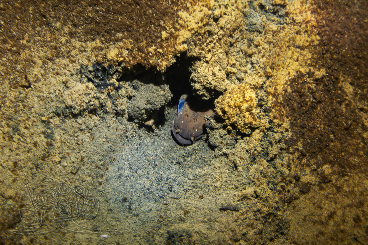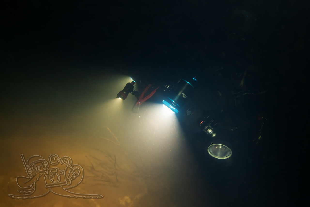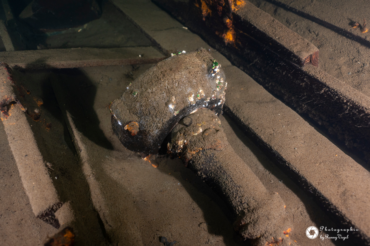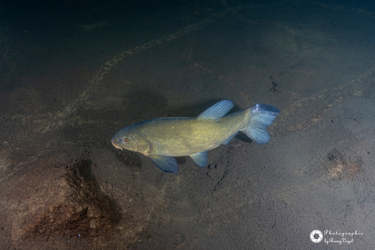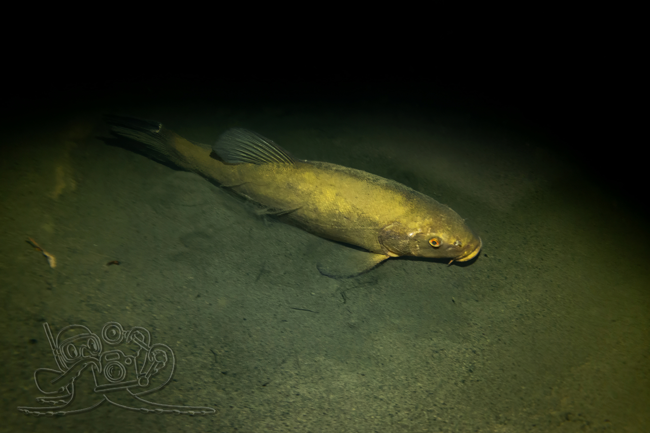 Bei -1 °C Luft- und +4 °C Wassertemperatur hatten wir den Bruch wieder einmal ganz für uns alleine. Zunächst waren wir enttäuscht, denn schlechte Sicht empfing uns auf den ersten zehn Metern des Abstiegs. Im Kessel änderte sich die Sicht zum Positiven. So setzten wir unsere Runde über die beiden Wartburg-Wracks auf dem Kesselboden fort. Auf 25 Meter erwartete uns ein klar abgegrenzter Nebelvorhang, der uns glatt zu ein paar Schnappschüssen dieser Impression verleitete. Wir setzten unsere Runde über die Hinterlassenschaften des unteren Kessel-Plateaus fort. Zu unserer großen Freude fanden wir dort gar einen Aal, eine ruhende Schleie sowie zahlreiche kleine Barsche. Beim Austauchen entlang der Straße konnten wir im Nebel doch auch einige Rotaugen finden.