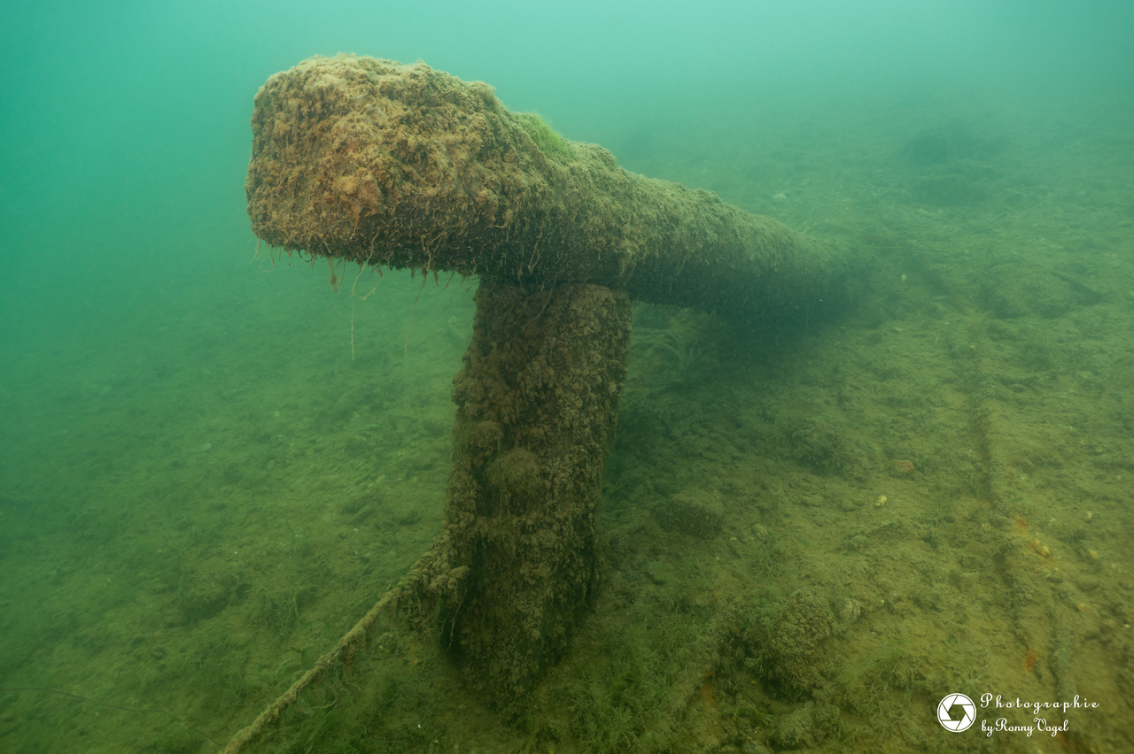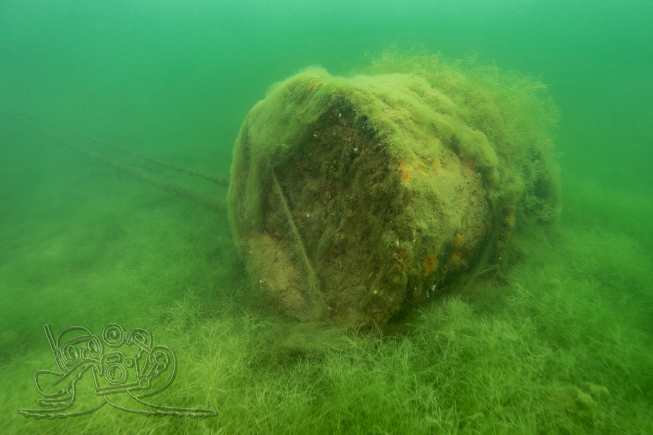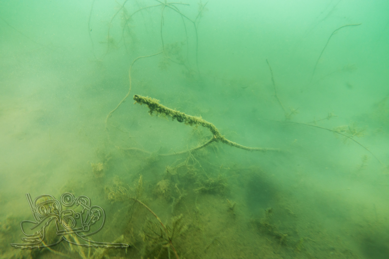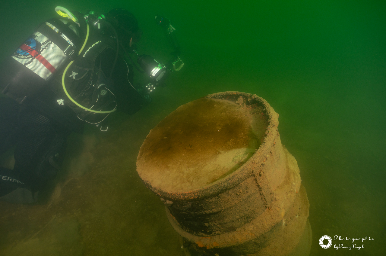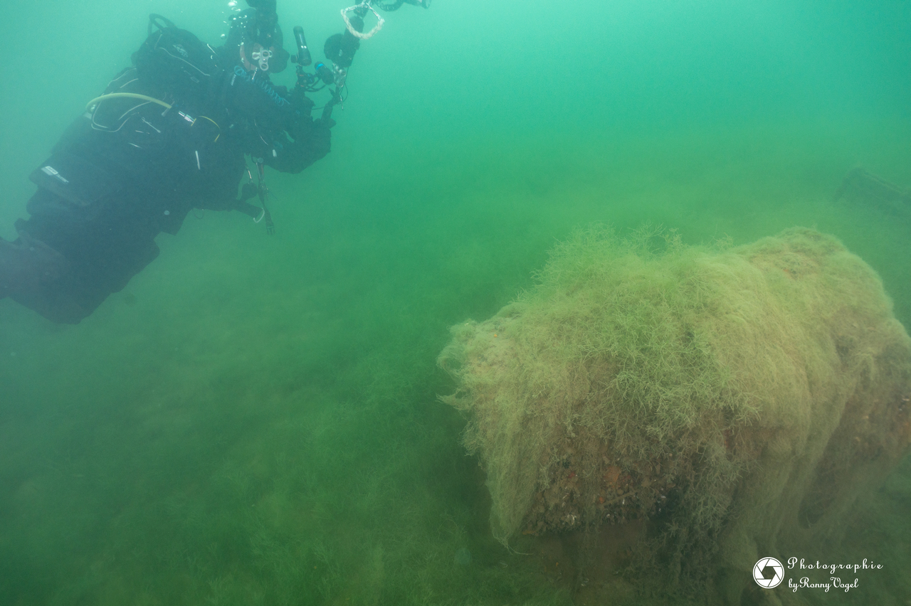 Bedingt durch die zurückliegenden Nachtfröste empfing unsere eine Wassertemperatur 3 °C. Entsprechend still zeigten sich Flora und Fauna. Von den Fischen fanden wir nur in der Tiefe zahlreiche Spuren im Sediment. Allein ein kleiner Flussbarsch hatte sich im Abfall eine schützende Behausung gesucht und hielt unseren Blicken stand. Die Sicht hatte sich in allen Tiefen verschlechtert, in oberen Bereichen fanden wir auch dicke Nebelbänke.