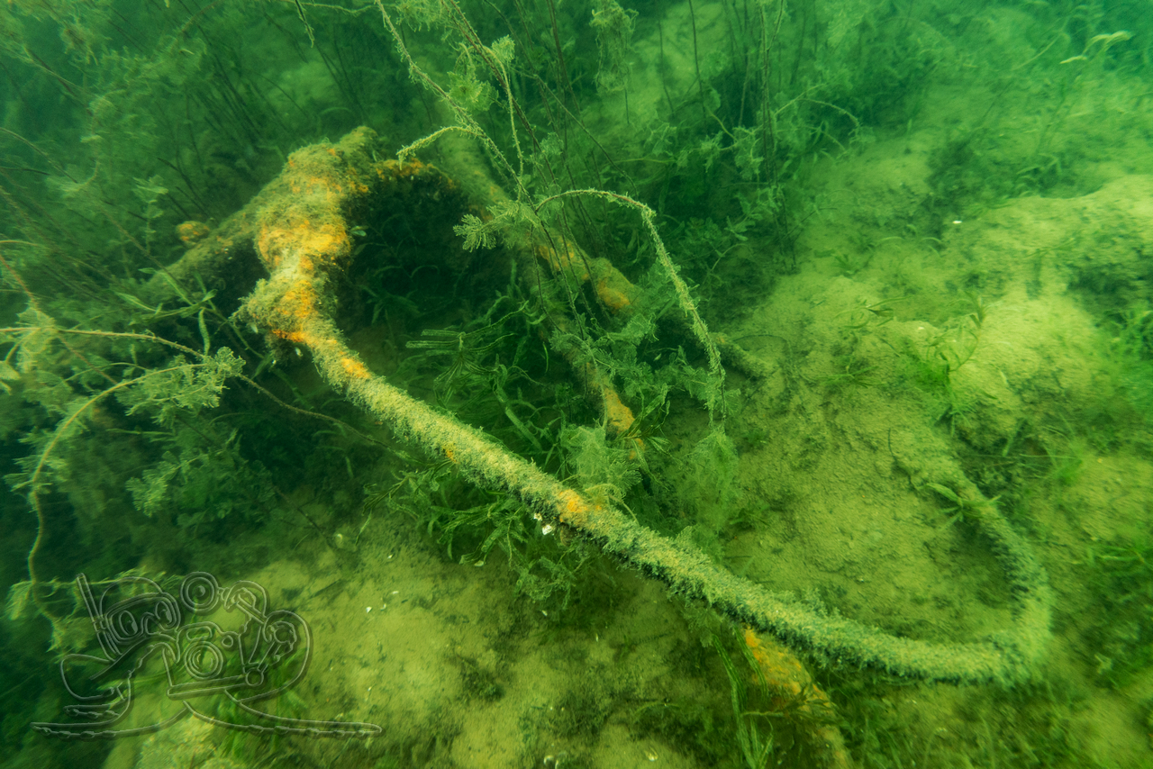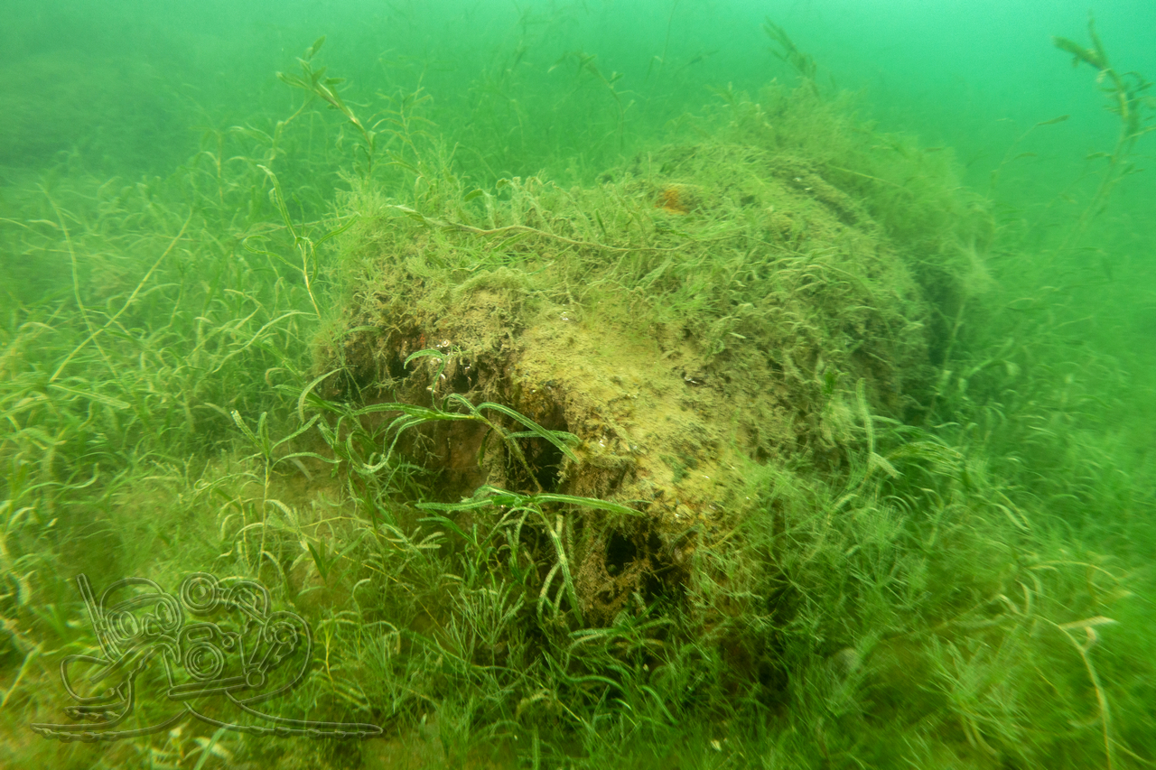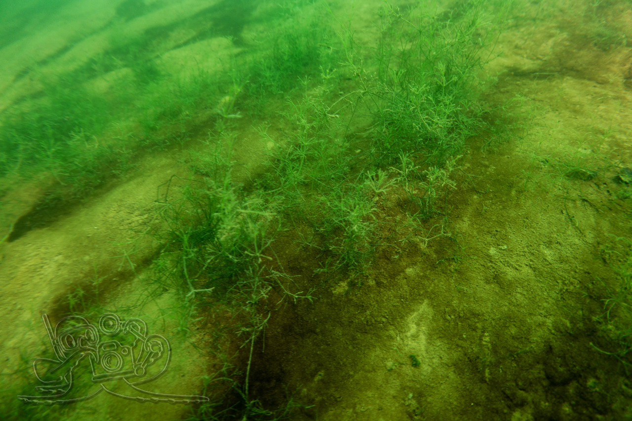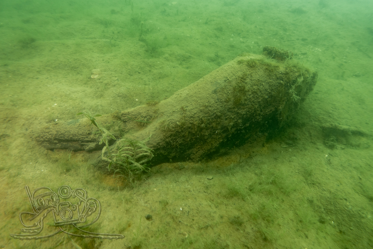 Bedingt durch die zurückliegenden Nachtfröste empfing unsere eine Wassertemperatur 3 °C. Entsprechend still zeigten sich Flora und Fauna. Von den Fischen fanden wir nur in der Tiefe zahlreiche Spuren im Sediment. Allein ein kleiner Flussbarsch hatte sich im Abfall eine schützende Behausung gesucht und hielt unseren Blicken stand. Die Sicht hatte sich in allen Tiefen verschlechtert, in oberen Bereichen fanden wir auch dicke Nebelbänke.