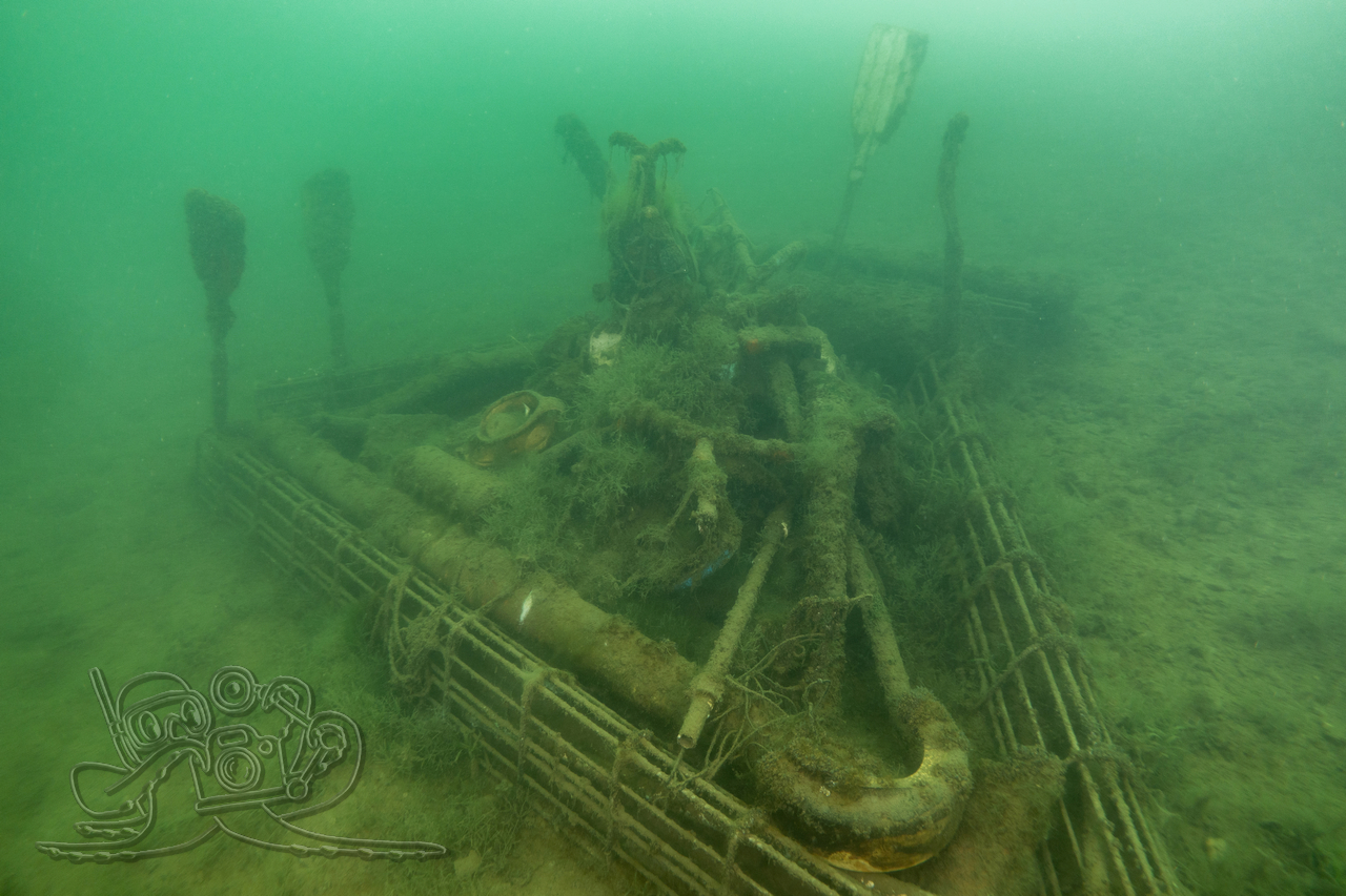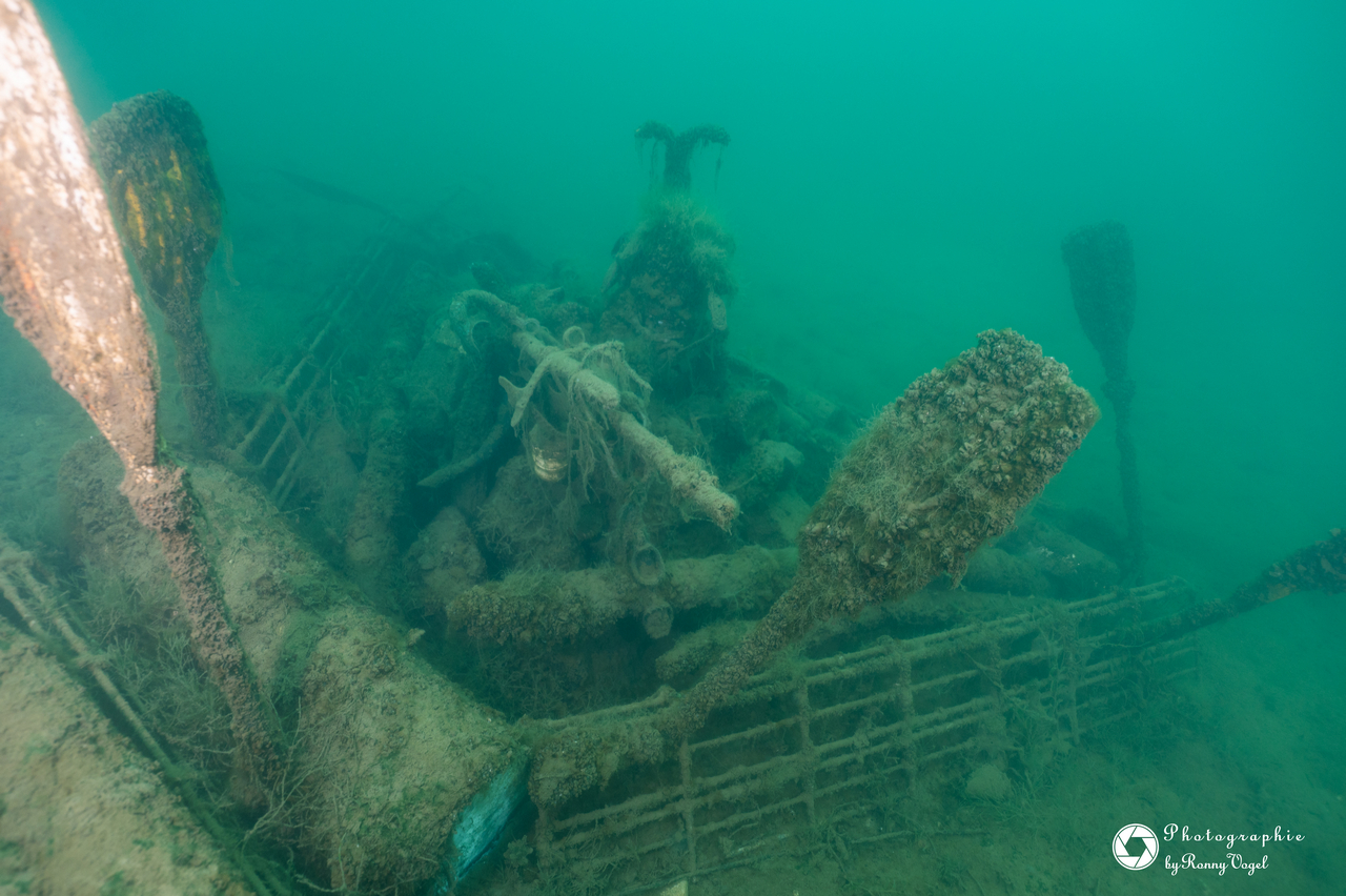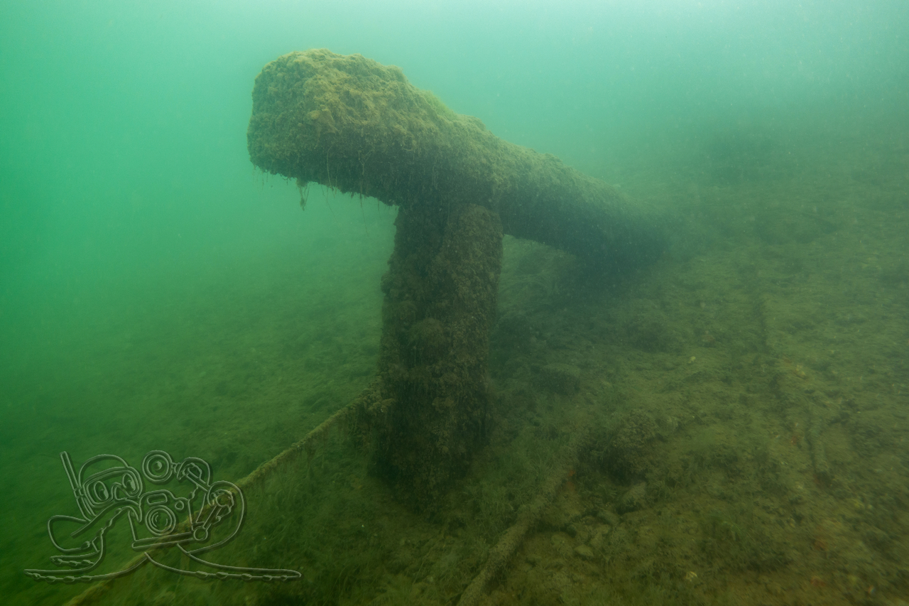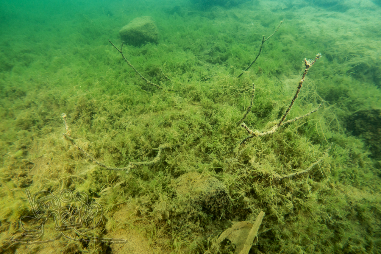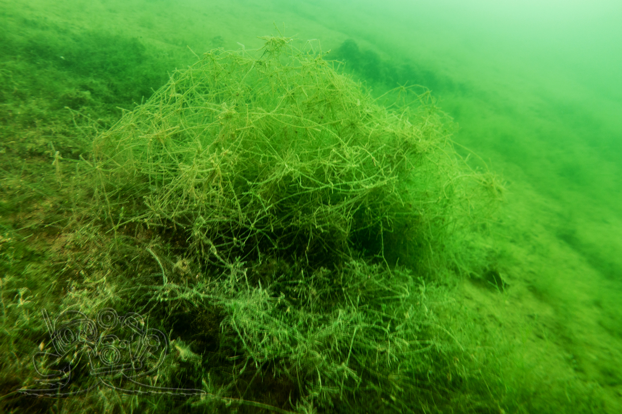 Bedingt durch die zurückliegenden Nachtfröste empfing unsere eine Wassertemperatur 3 °C. Entsprechend still zeigten sich Flora und Fauna. Von den Fischen fanden wir nur in der Tiefe zahlreiche Spuren im Sediment. Allein ein kleiner Flussbarsch hatte sich im Abfall eine schützende Behausung gesucht und hielt unseren Blicken stand. Die Sicht hatte sich in allen Tiefen verschlechtert, in oberen Bereichen fanden wir auch dicke Nebelbänke.