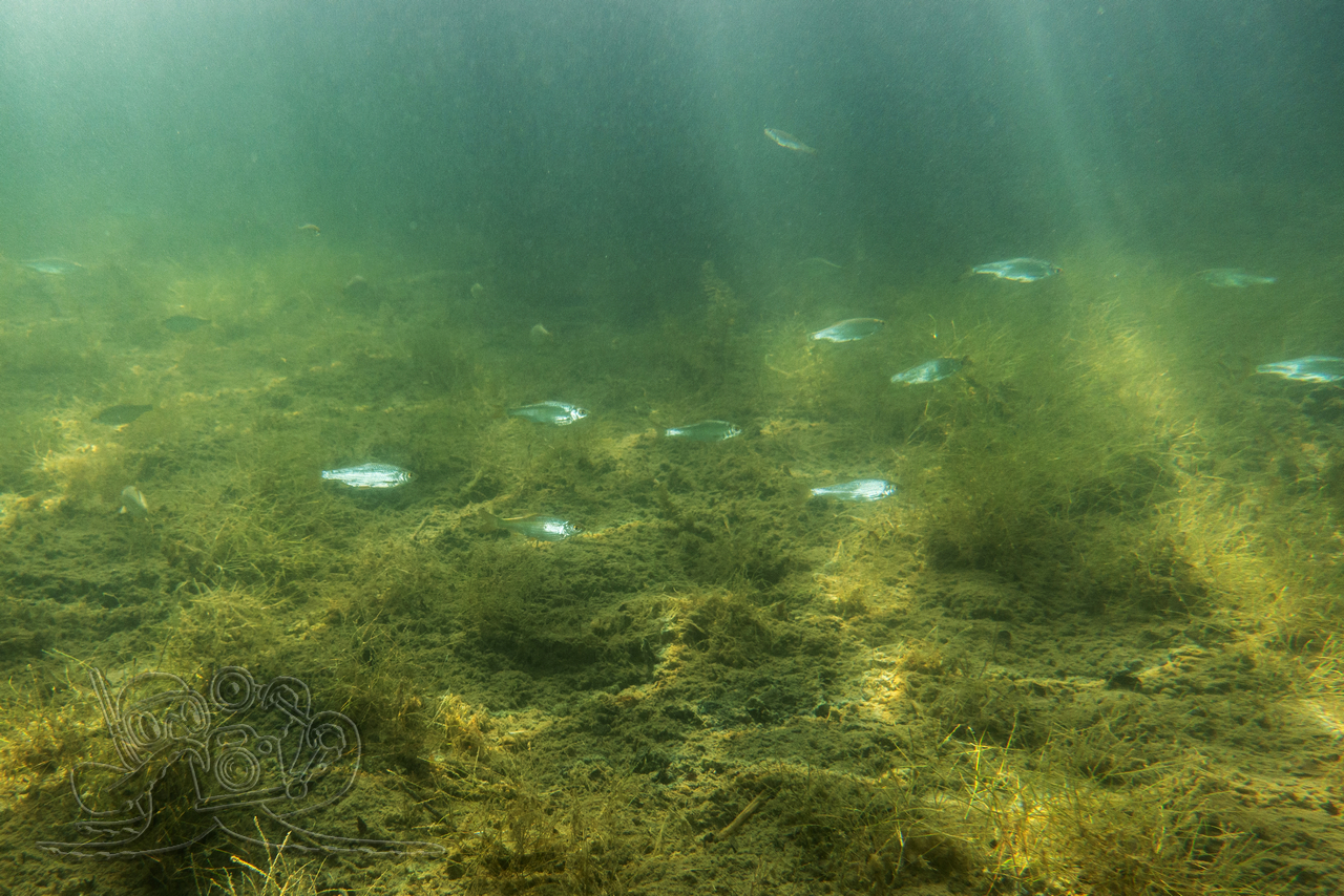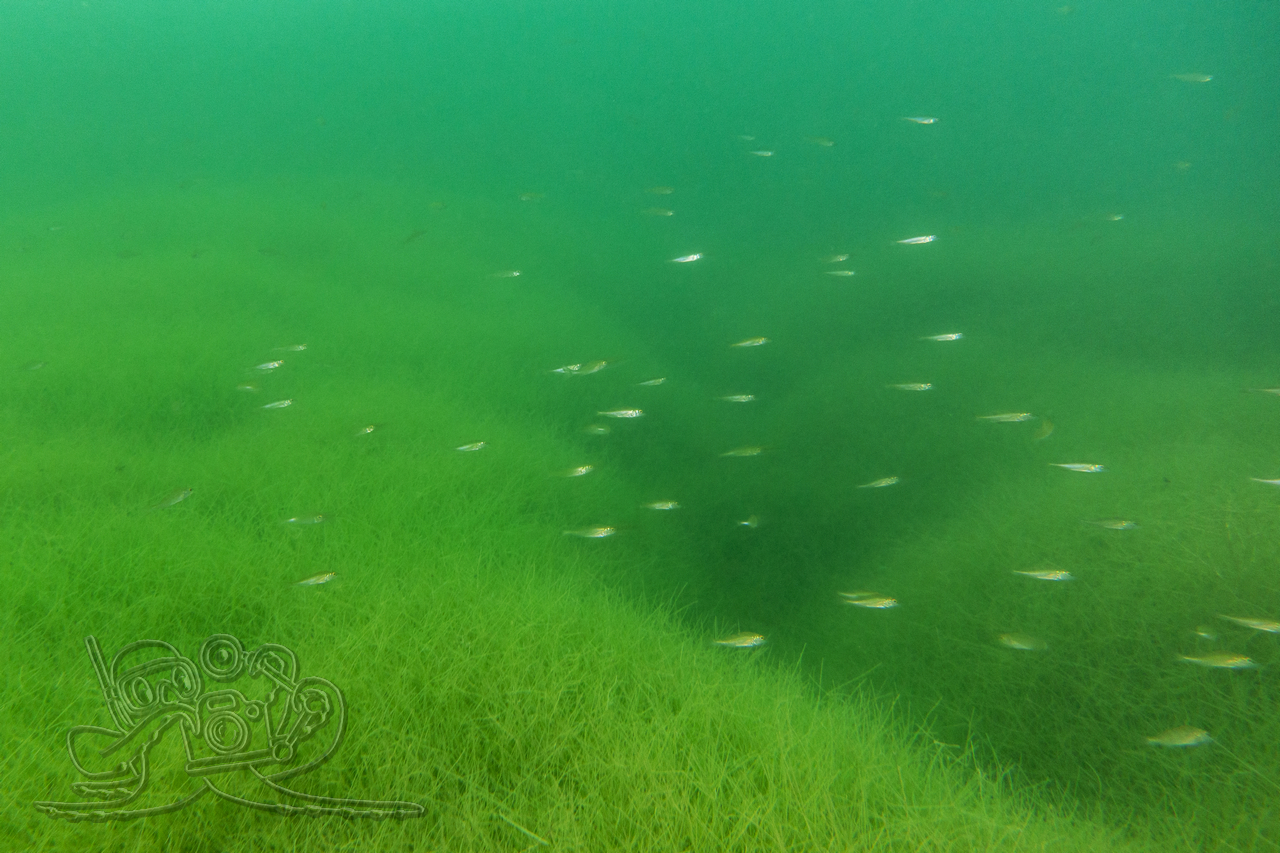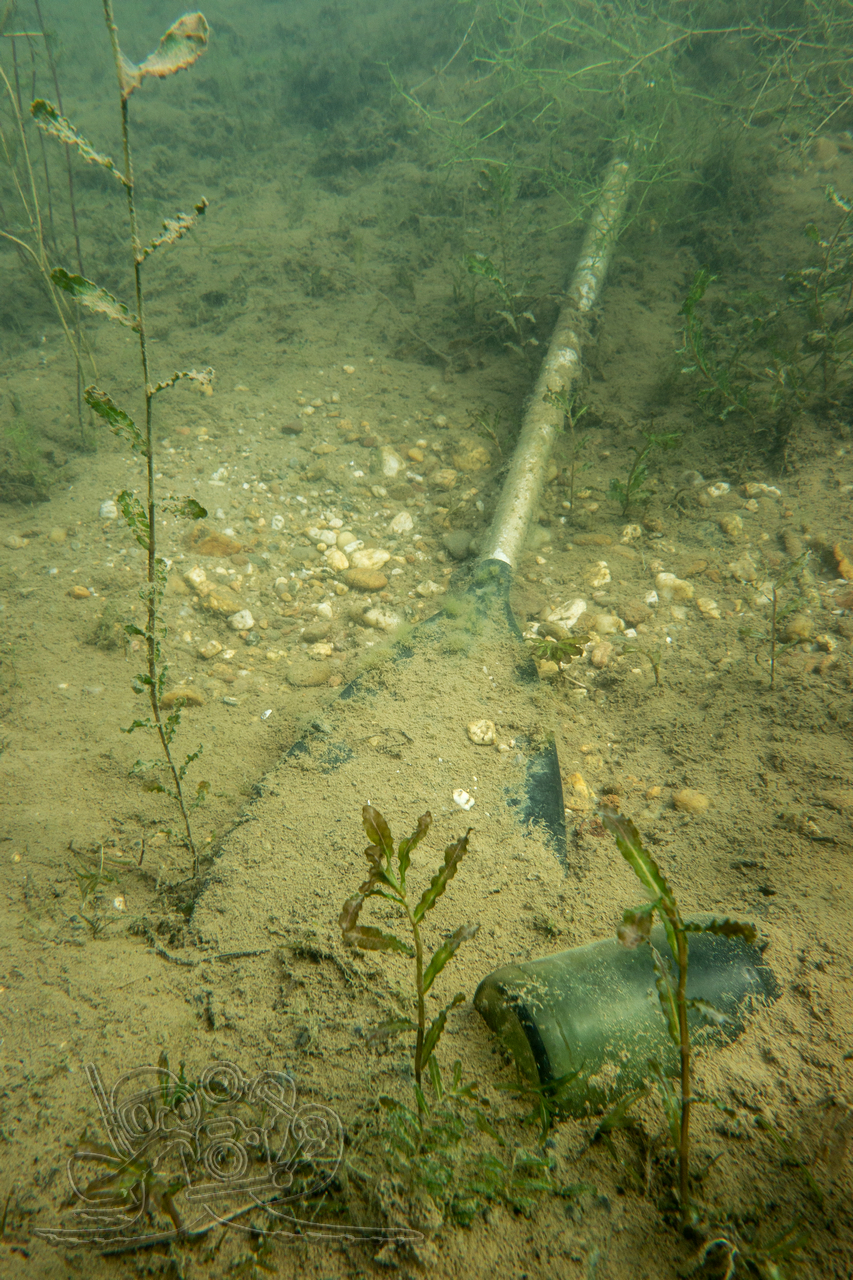 Temperaturen und Wind sorgten für einen nahezu menschenleeren Kiessee. So konnten wir ihn in Ruhe von einer anderen Seite aus betauchen. Die Mehrzahl der Fotos waren als Dokumentation für eine Arbeitsgruppe der Stadt Naunhof gedacht. Die Hinterlassenschaften der Badegäste hielten sich auf unserer Runde in Grenzen. Bei passender Gelegenheit sollte dann eine Aufräumaktion geplant werden. Zusätzlich gab es viele Fische. Die größeren Exemplare zeigten sich scheu und nicht fotofreudig. Dafür gab es ein Empfangskomitee am Ausstieg, das kaum Fluchtdistanz hielt.