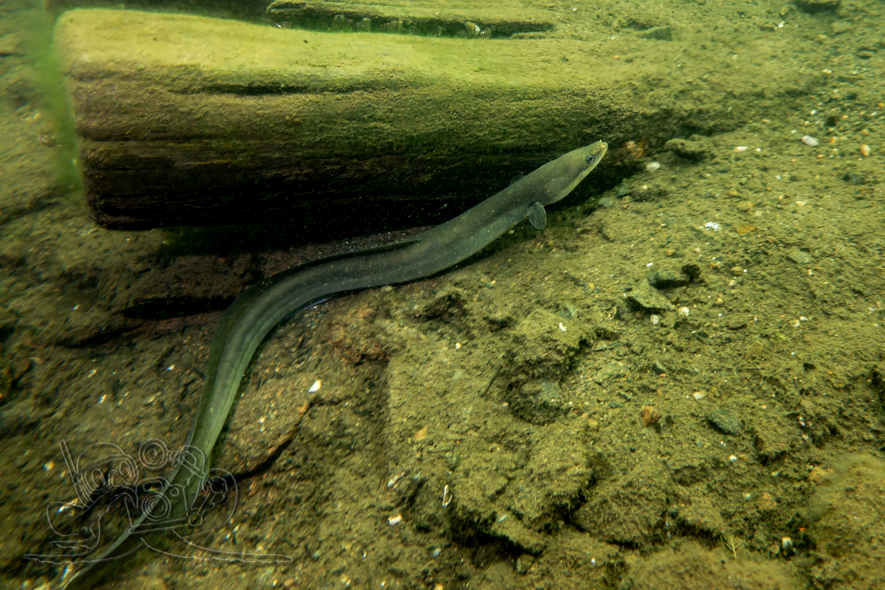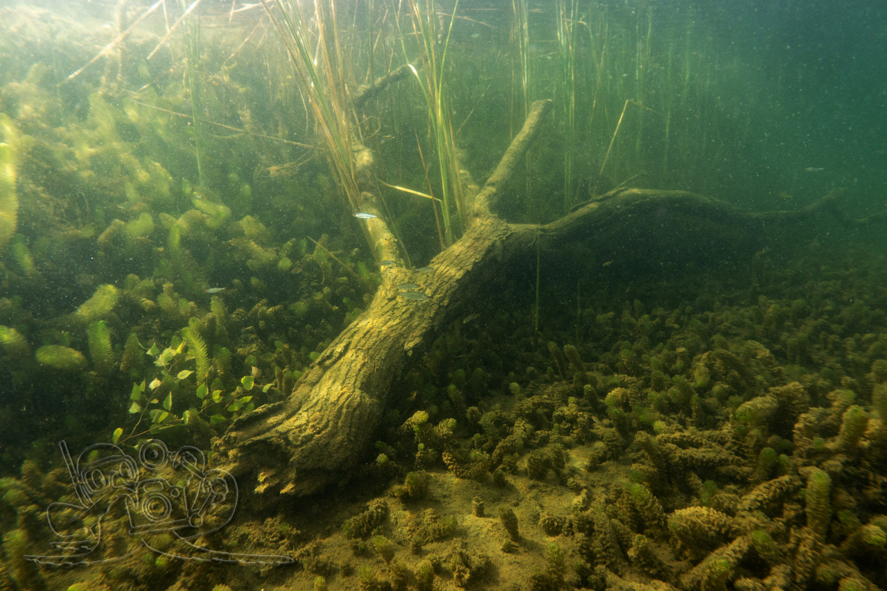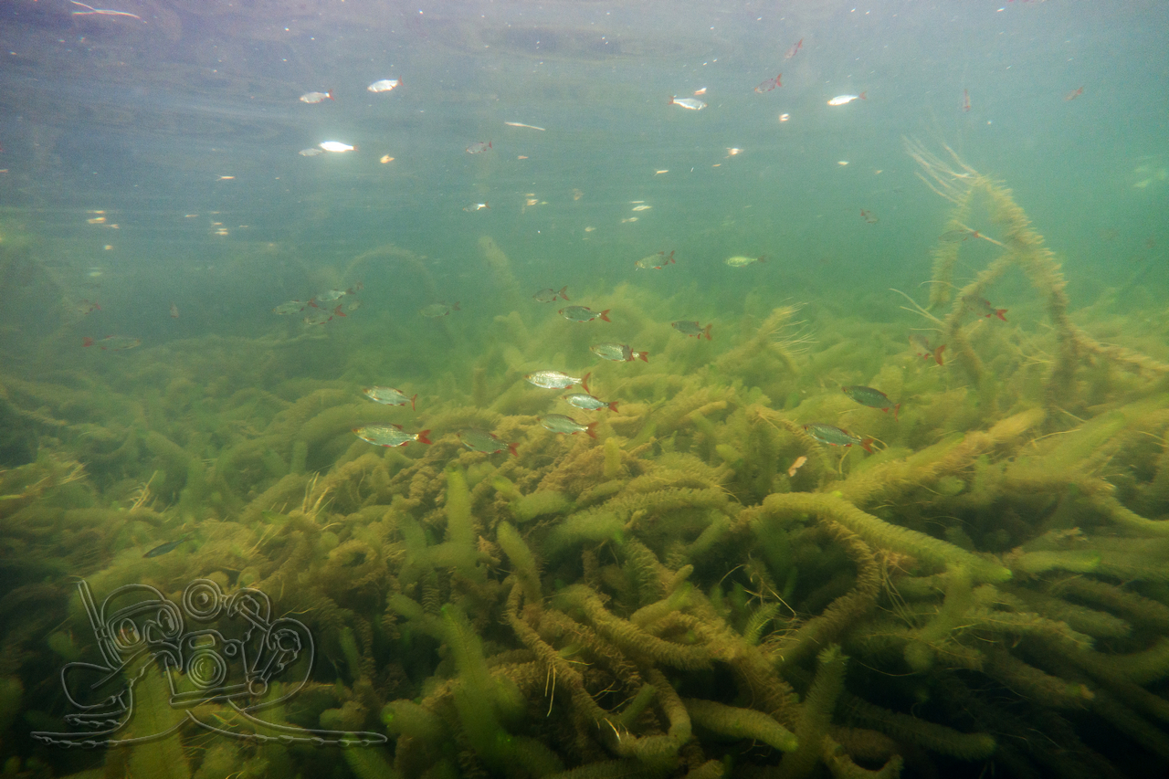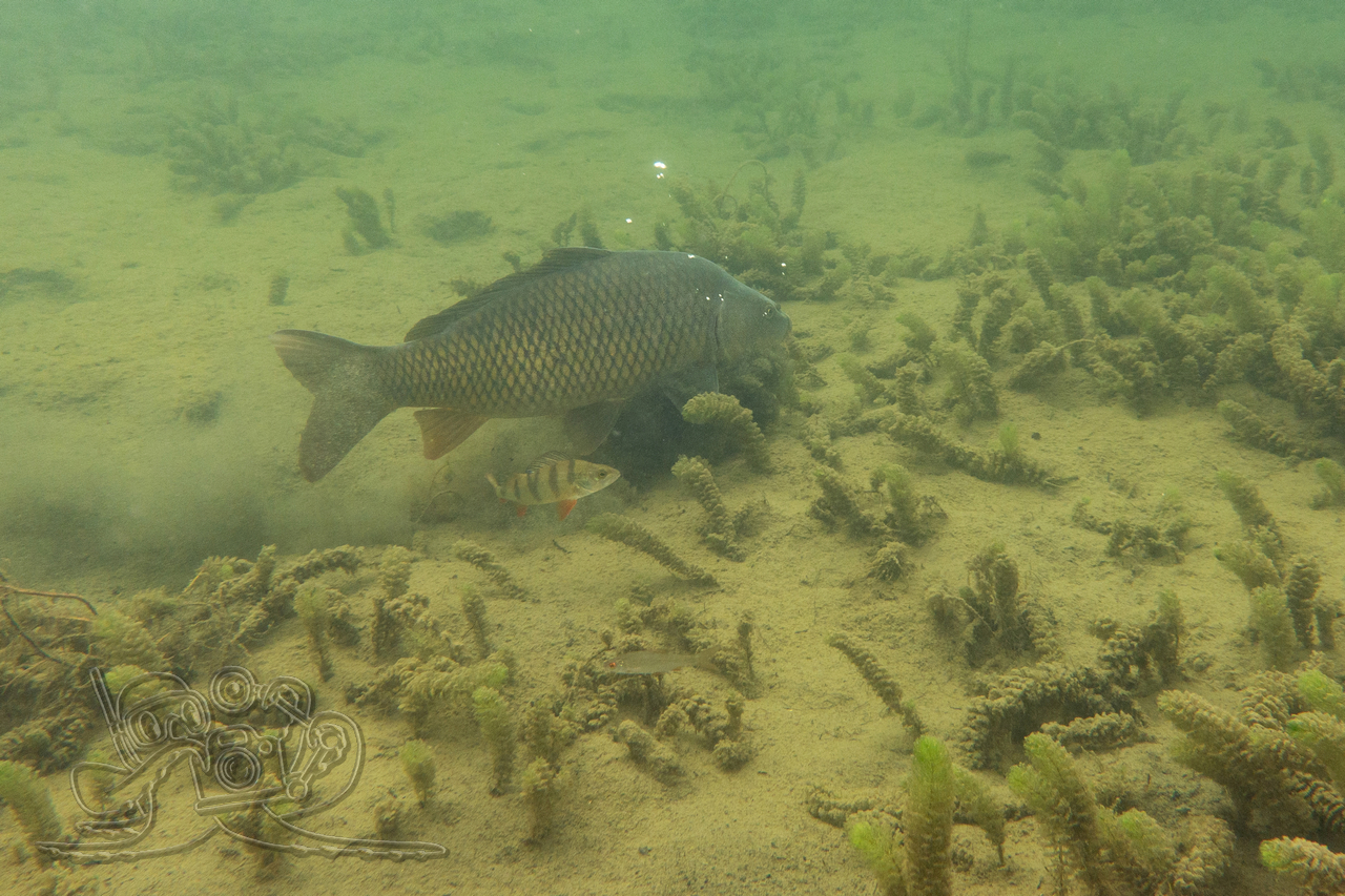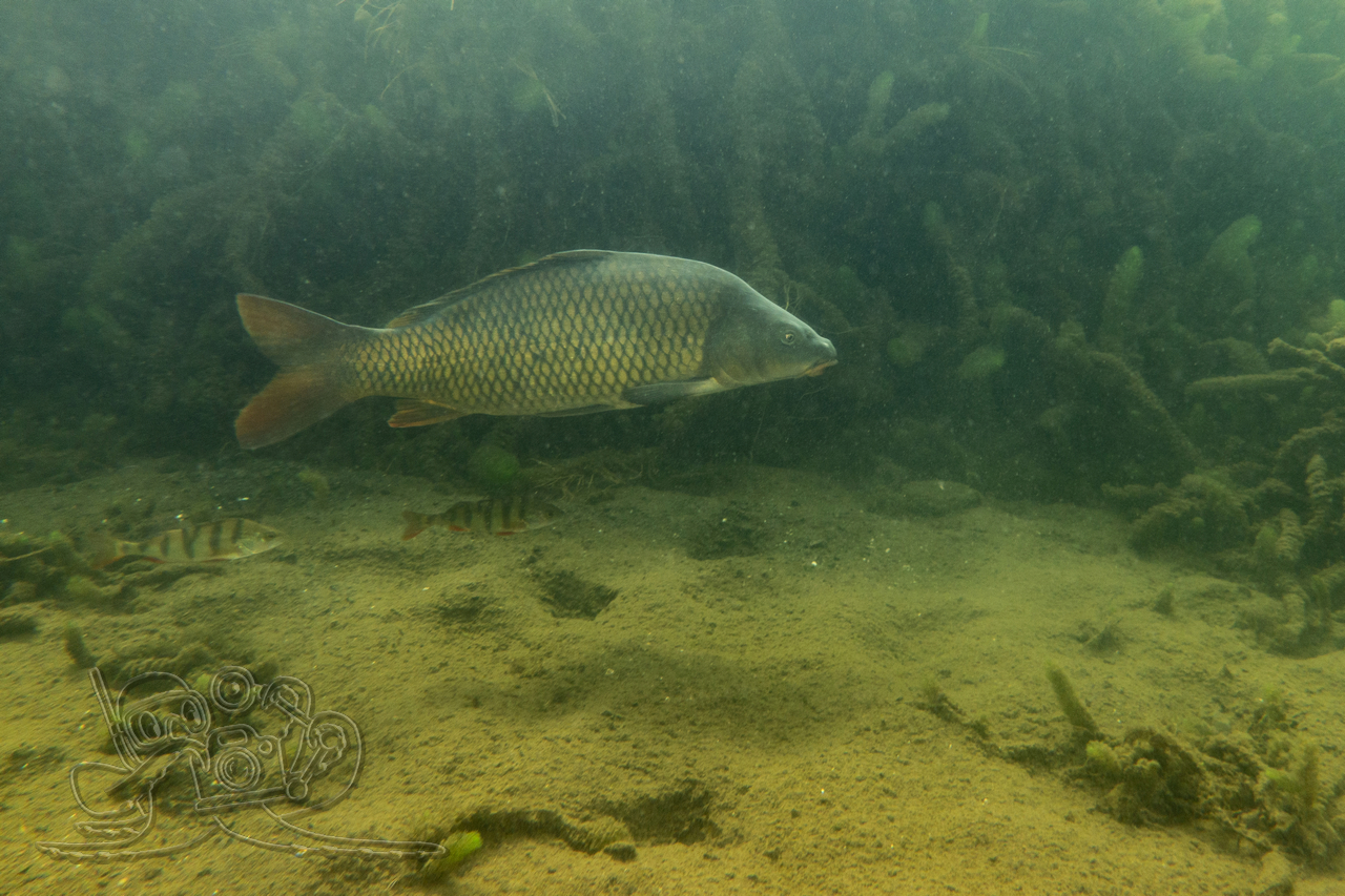 Der Haselberg bot sich für den ersten Check an und führte uns bis in den Kessel hinab. Oben schien der Herbst bereits Einzug zu halten: Von der größeren Fischen zeigten sich nur Karpfen und Barsche, allenfalls halbstarke Hechte. Umso überraschter waren wir, als sich kurz vor Ende noch ein Aal zu uns gesellte.