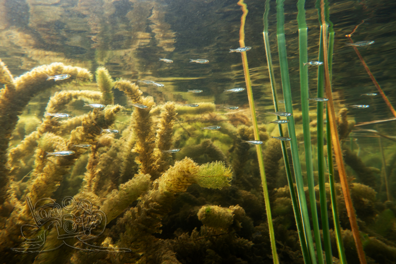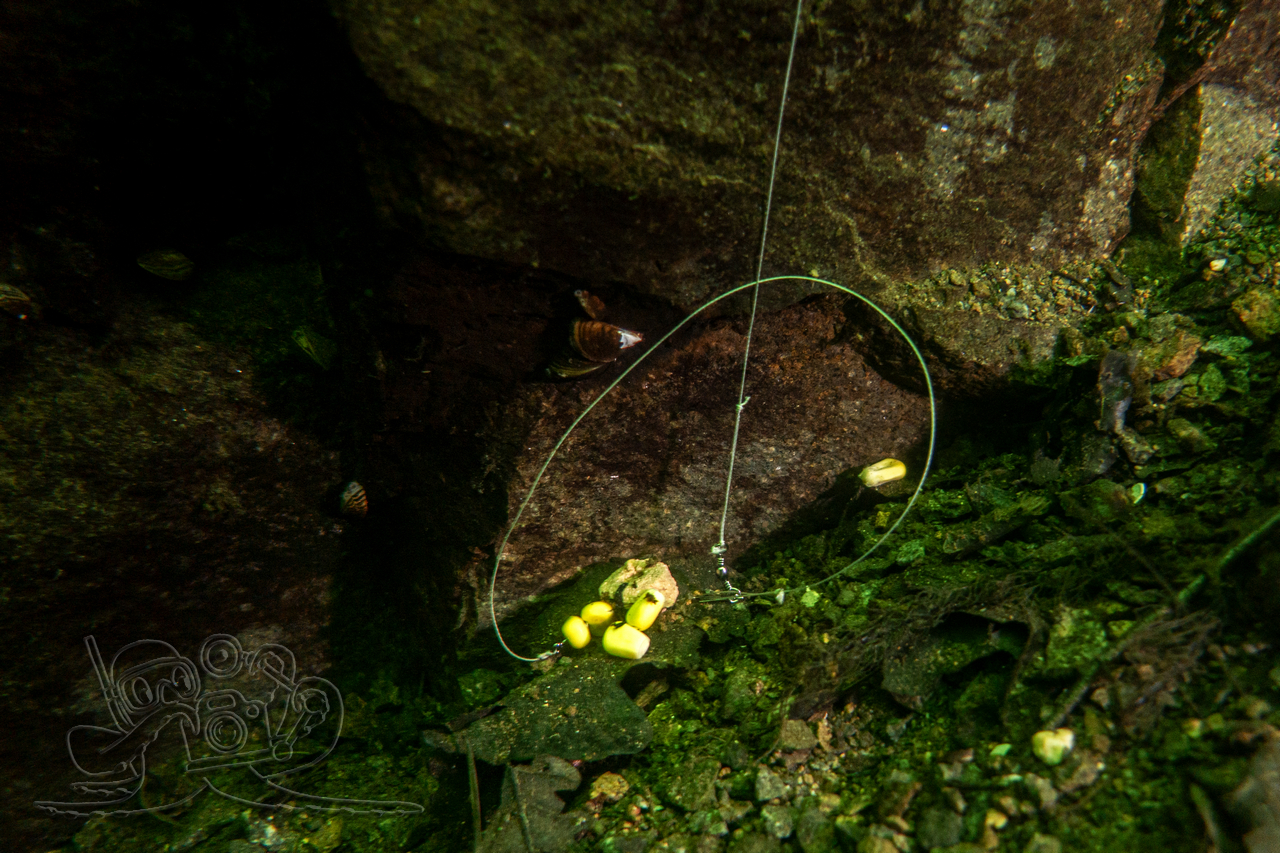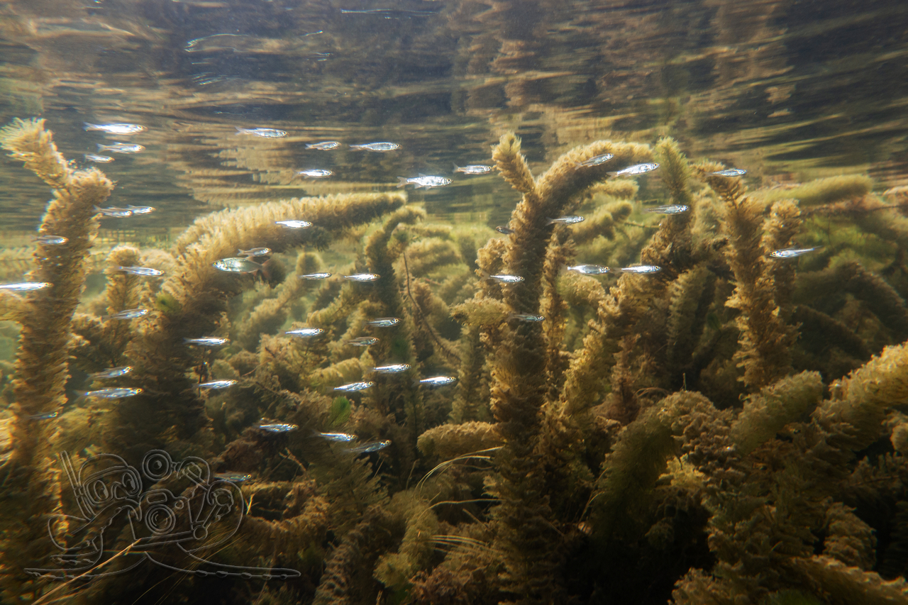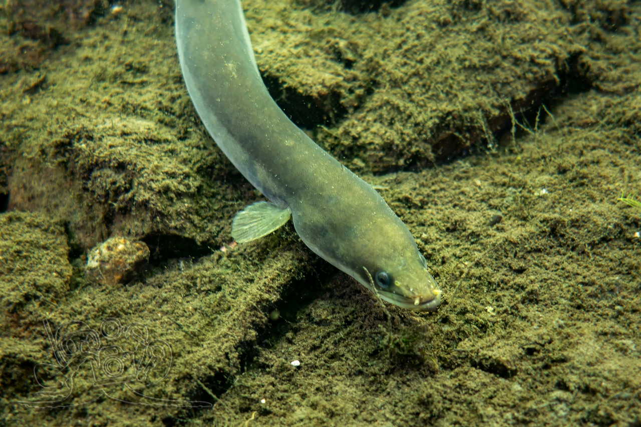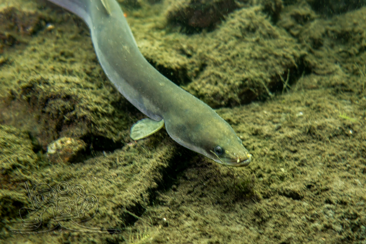 Der Haselberg bot sich für den ersten Check an und führte uns bis in den Kessel hinab. Oben schien der Herbst bereits Einzug zu halten: Von der größeren Fischen zeigten sich nur Karpfen und Barsche, allenfalls halbstarke Hechte. Umso überraschter waren wir, als sich kurz vor Ende noch ein Aal zu uns gesellte.