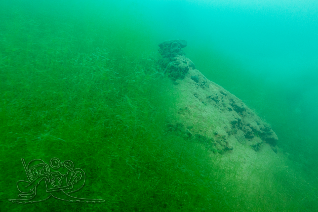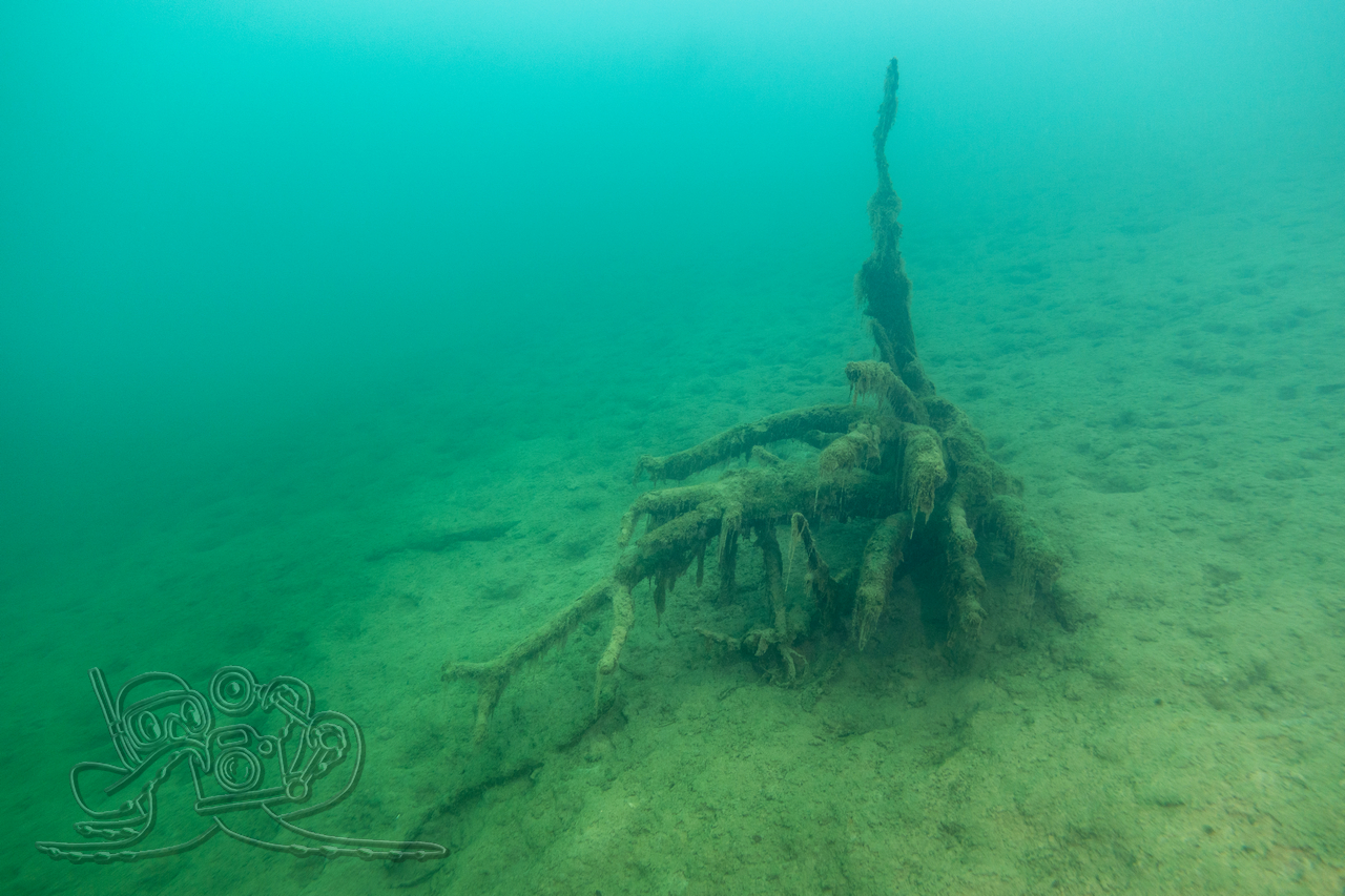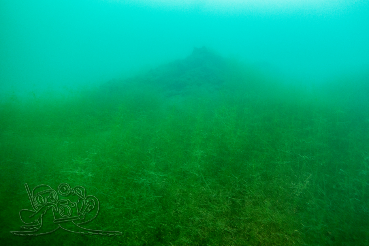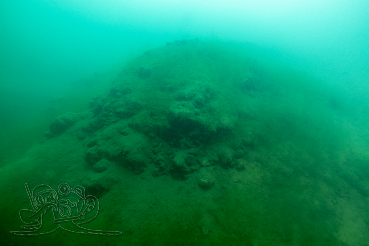 Der Grillensee ist heute ein beliebter Badesee und hat unter Wasser viele Gesichter. Bei Abtauchen an einer neuen Einstiegsstelle glitten wir zunächst über steile Kieshänge, denen „löchrige“ Sedimentböden folgten. Hier hatten die wühlenden Fische ganze Arbeit geleistet und nur mit Glück waren einzelne Makrophyten anzutreffen. Aber ab acht bis zehn Metern Wassertiefe, wo das Wasser merklich kühler wurde, empfingen uns weite Characeen-Wiesen. Diese reichten im flächigen Bestand bis durchschnittlich 13 Metern Wassertiefe. Aber auch bis stolze 20,1 Metern Wassertiefe (Untere Makrophytengrenze) konnten wir noch einzelne Characeen-Polster finden. Neben der Unterwasserflora begeisterten uns zugleich skurrile Kies-Formationen, die durchaus die Fantasie anregten.