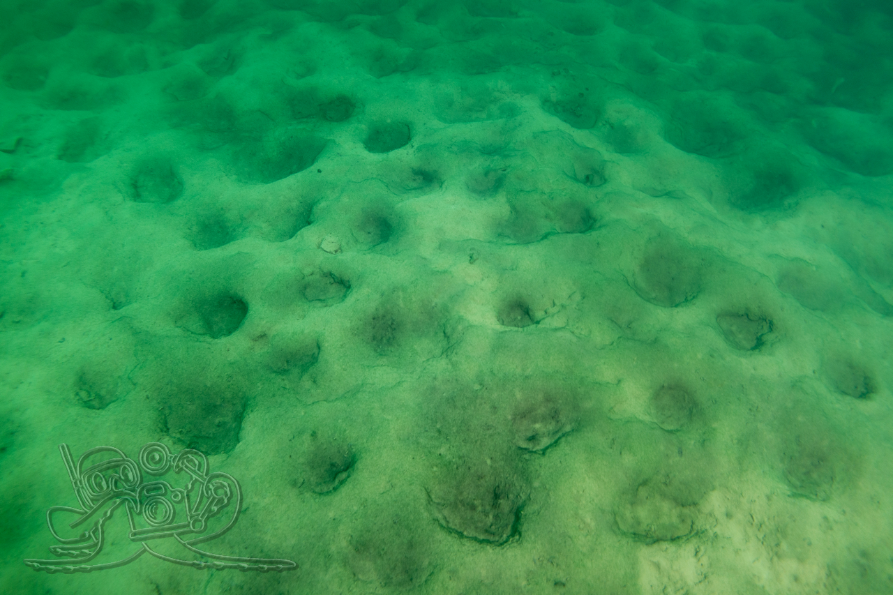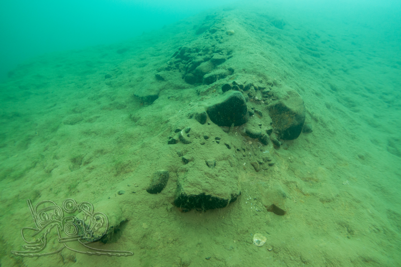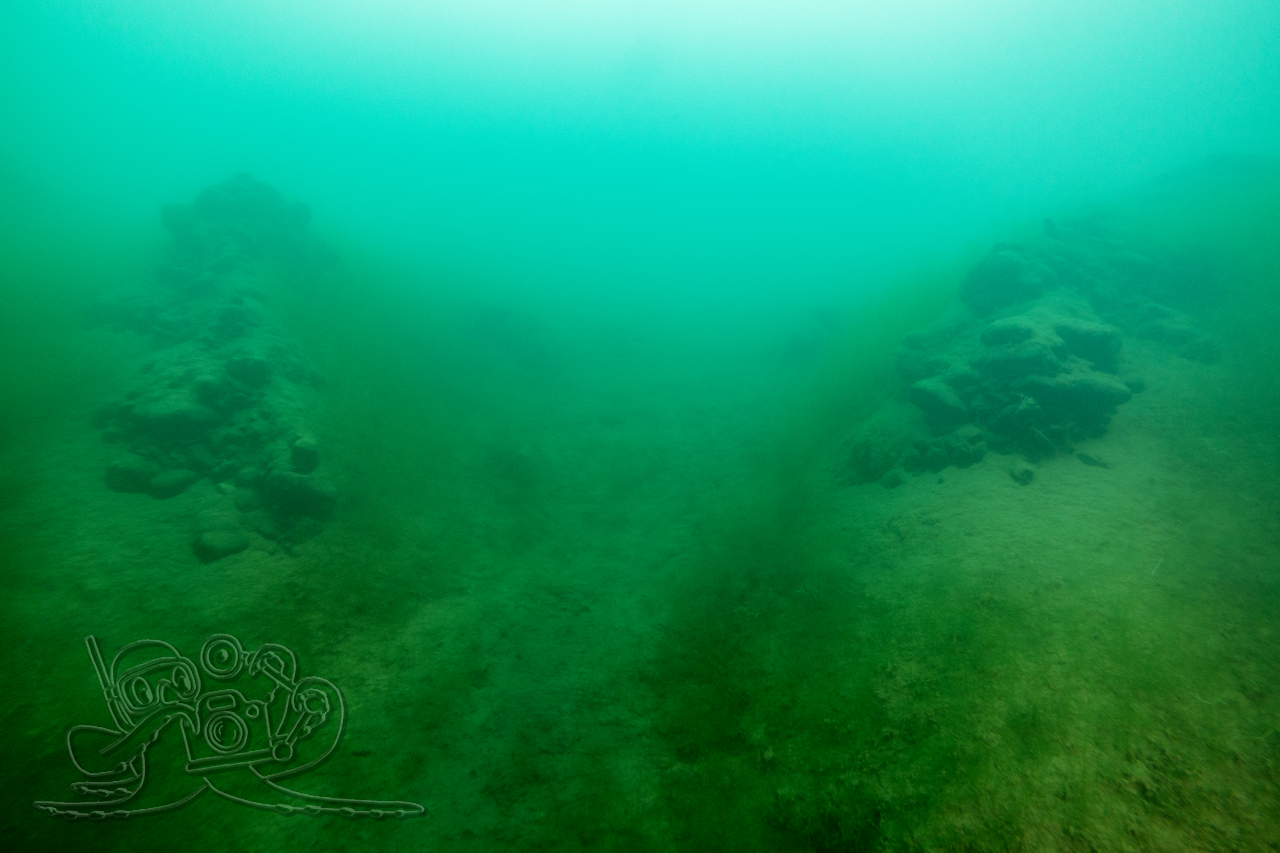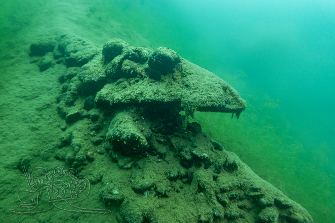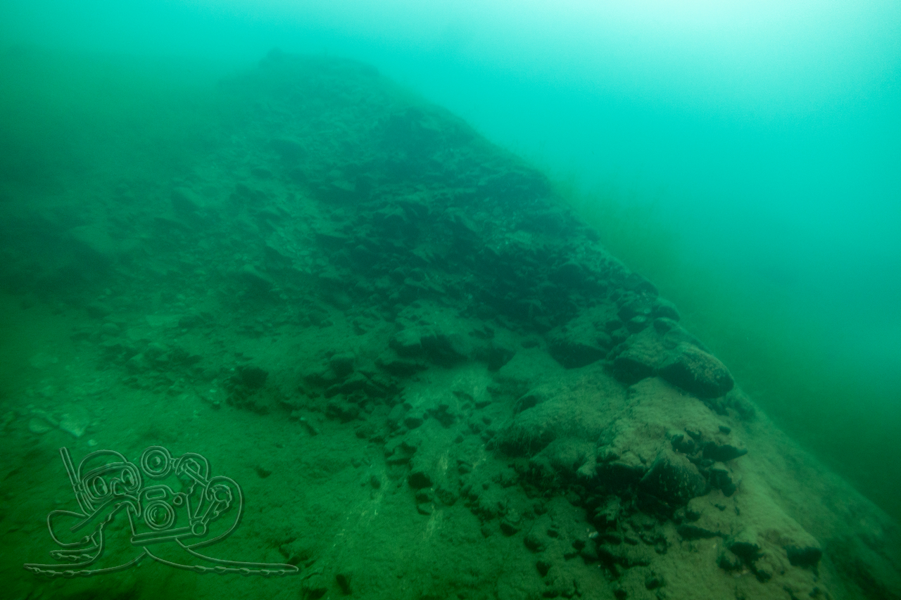 Der Grillensee ist heute ein beliebter Badesee und hat unter Wasser viele Gesichter. Bei Abtauchen an einer neuen Einstiegsstelle glitten wir zunächst über steile Kieshänge, denen „löchrige“ Sedimentböden folgten. Hier hatten die wühlenden Fische ganze Arbeit geleistet und nur mit Glück waren einzelne Makrophyten anzutreffen. Aber ab acht bis zehn Metern Wassertiefe, wo das Wasser merklich kühler wurde, empfingen uns weite Characeen-Wiesen. Diese reichten im flächigen Bestand bis durchschnittlich 13 Metern Wassertiefe. Aber auch bis stolze 20,1 Metern Wassertiefe (Untere Makrophytengrenze) konnten wir noch einzelne Characeen-Polster finden. Neben der Unterwasserflora begeisterten uns zugleich skurrile Kies-Formationen, die durchaus die Fantasie anregten.