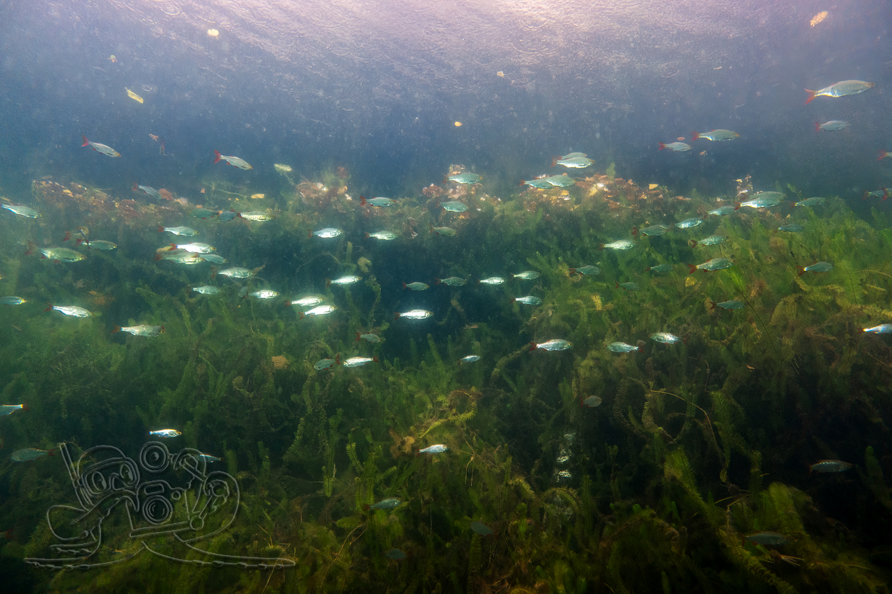 Unser Fokus galt den Edelkrebsen in einem kleinen Gewässer. Die bevorzugten es jedoch zumeist, sich in den Schutz der Steine zu begeben. So fanden wir mehr ihre Spuren als sie selbst. Die Herbstruhe hatte eben auch hier bereits Einzug gehalten.