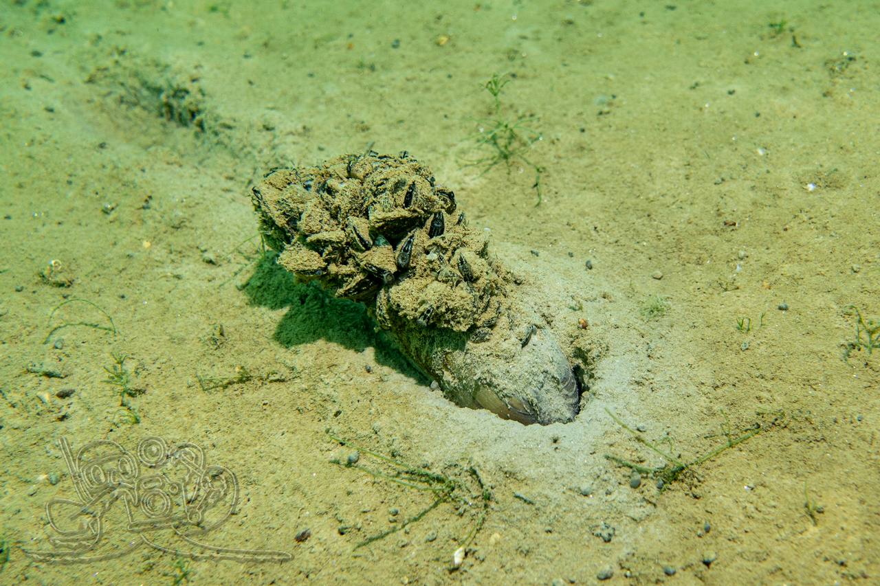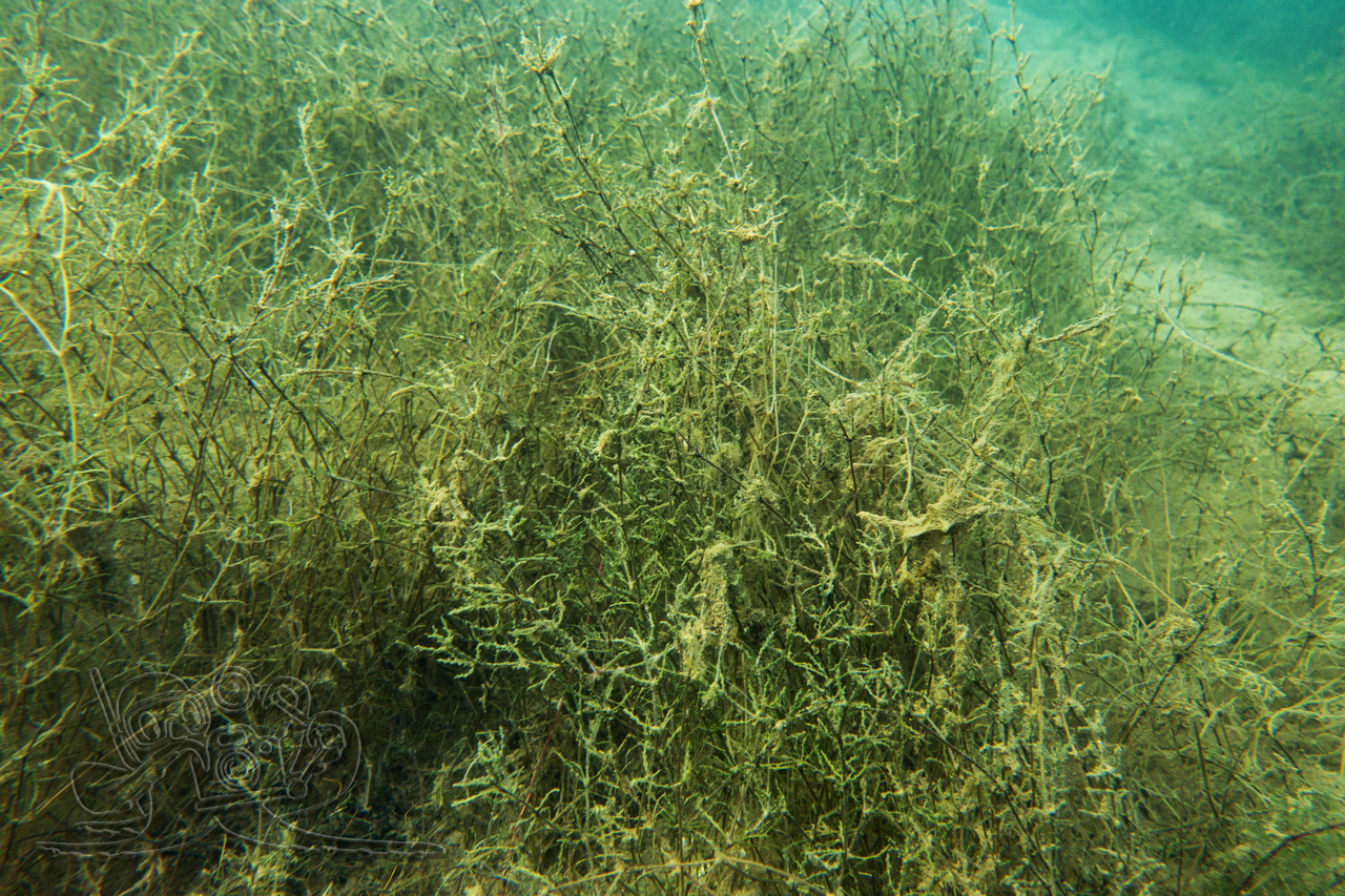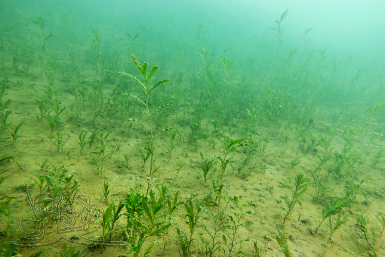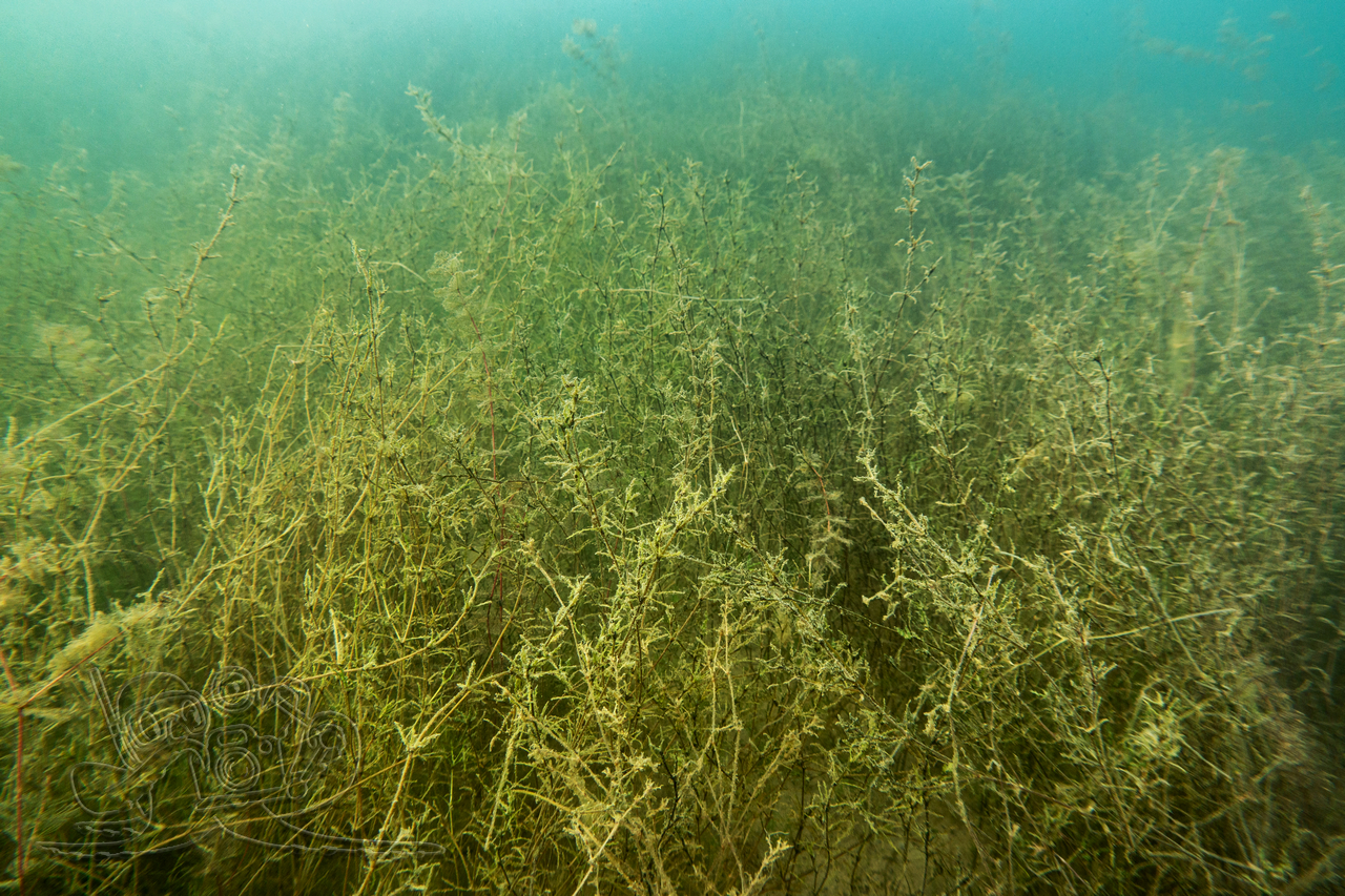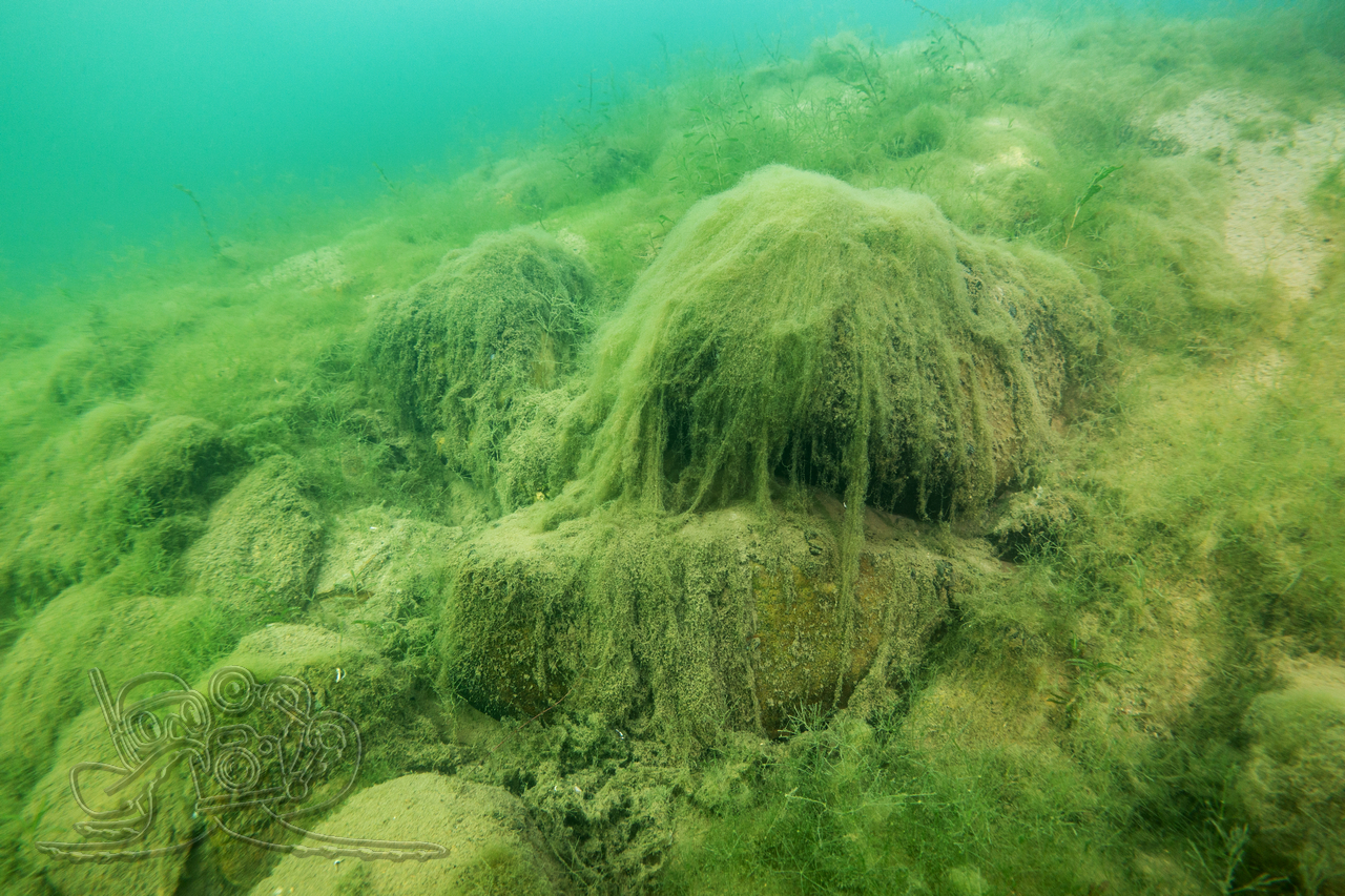 Bevor die Angler den Moritzsee für sich vereinnahmten, gönnten wir uns zum letzten Tag des Oktobers und sächsischen Feiertag zwei frühe Runden unter Wasser. Dort herrschte Herbststimmung: Die Vegetation war zurückgegangen, die größeren Fische hatten die Tiefe aufgesucht. So hatten die Fadenalgen in den lichtdurchfluteten Bereichen leichtes Spiel und ummantelten nicht nur Pflanzen. Wir ließen unsere Fantasie spielen und entdeckten so unter Wasser auch lang behaarte Köpfe.