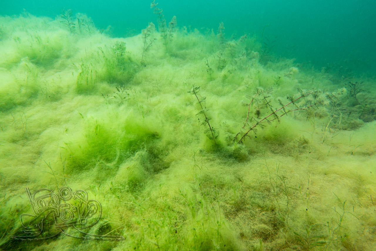 Fadenalgen rangen um die Vorherrschaft im Kiessee und sorgten so, passend zu Halloween, auch ganz ohne geschnitzte Kürbisse für eine mystische bis gruselige Stimmung.