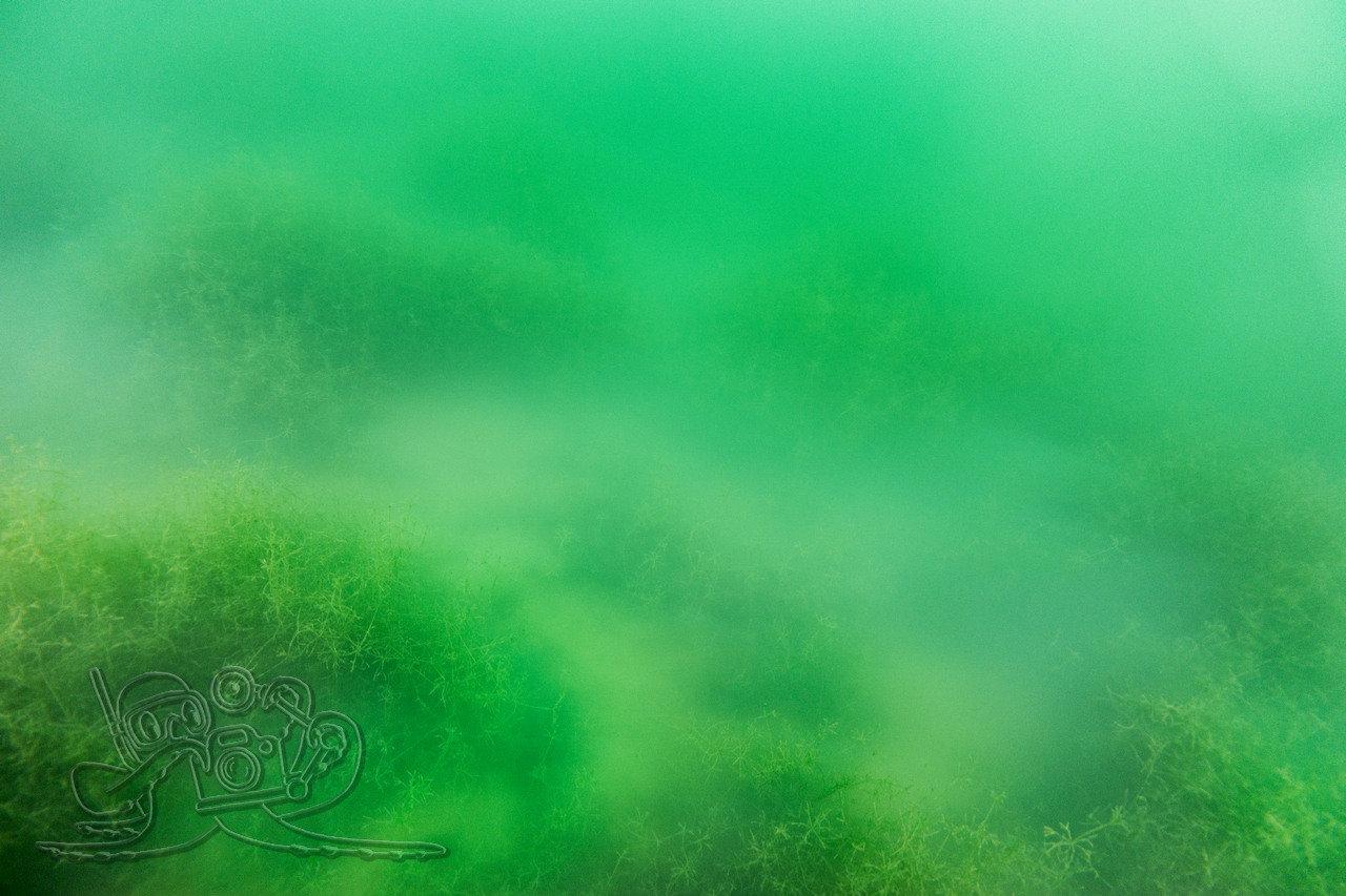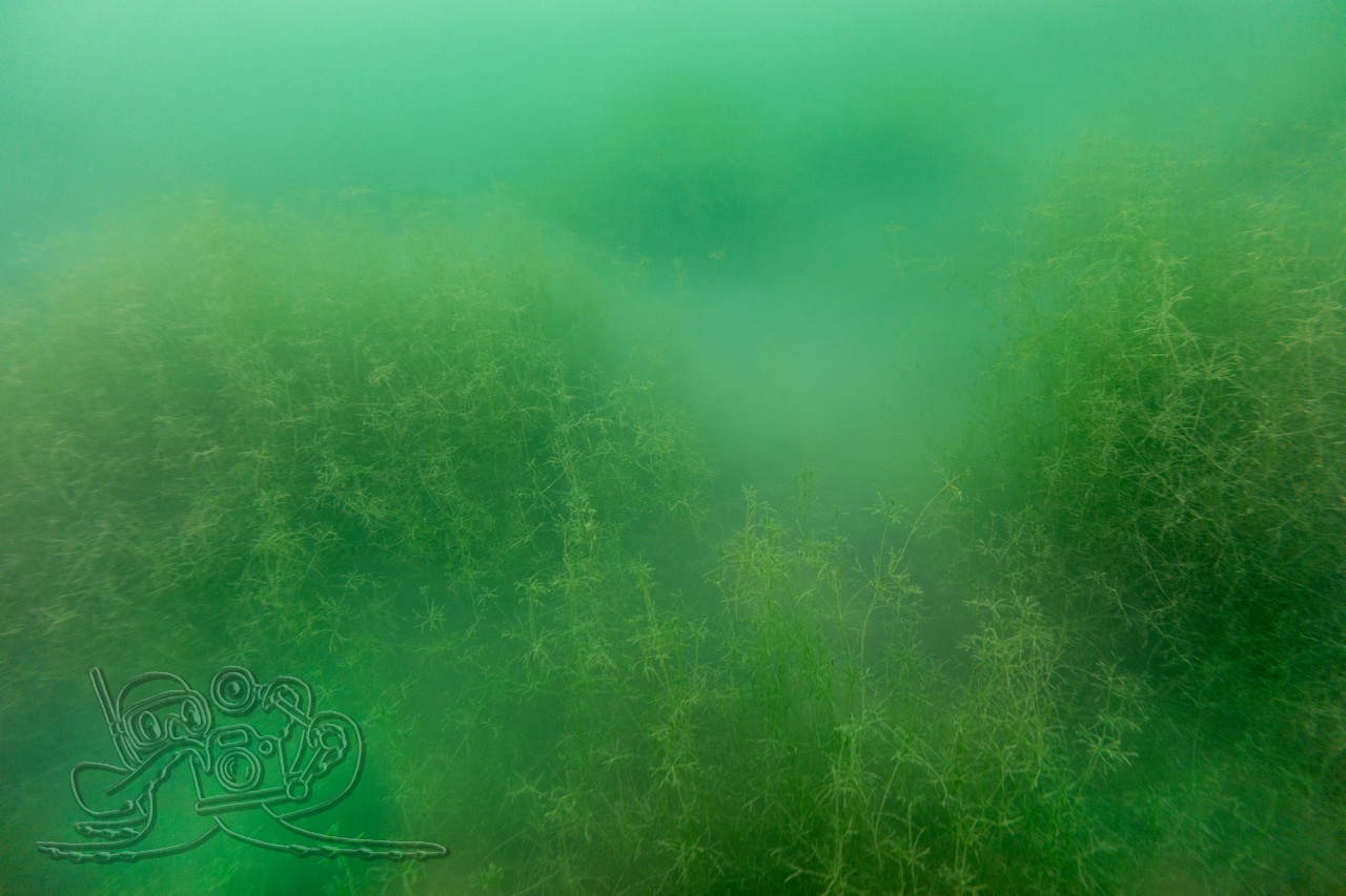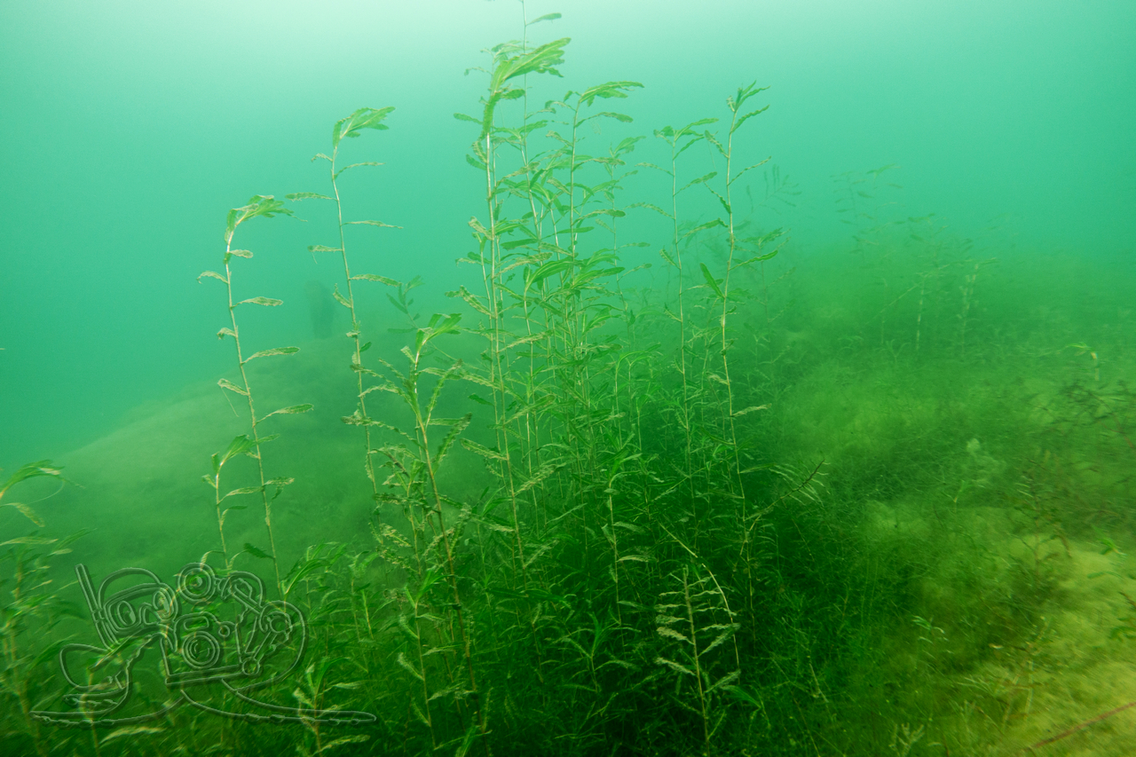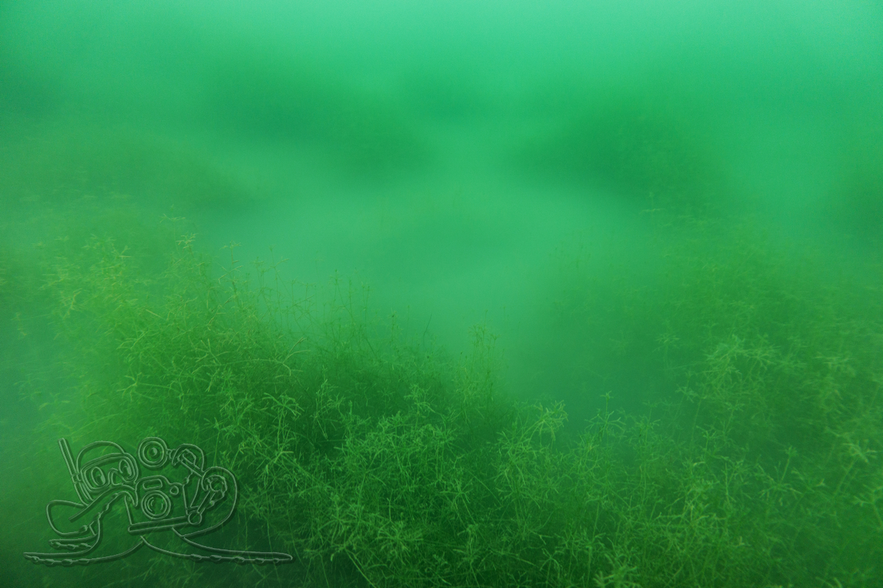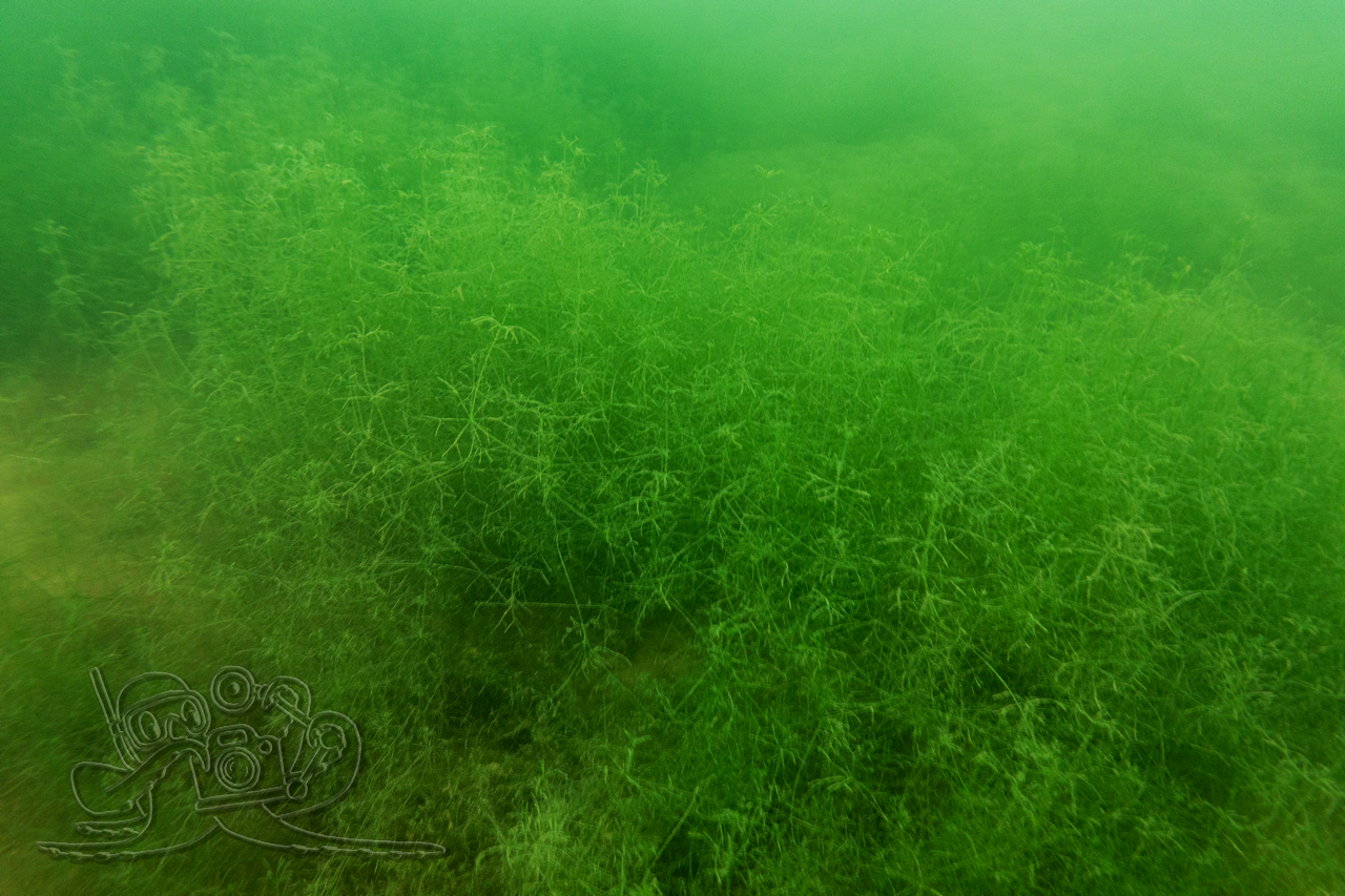 Heute sind wir in den Moritzsee und zugleich in den November eingetaucht. Wir starteten mit einem Sicht-Check. Dem Transekt folgend, mussten wir es mangels Sicht alsbald tasten. Ab 16 Meter Tiefe war Schluss mit dem Ausblick. Dafür sahen wir bei 16,1 Metern im Schein der Lampe noch Characeen und notierten eine für den See stolze Untere Makrophytengrenze. Uns zog es rasch wieder aufwärts. Bald empfingen uns grüne Wiesen mit Armleuchteralgen, die aus neblig-weißen Wolken ragten. Dazwischen huschten Schwärme kleiner Barsche und einzelne Rotaugen umher. Etwas höher besserte sich die Sicht leicht. Größere Barsche und halbstarke Hechte empfingen uns im Pflanzenbestand. Über die die weitreichenden Polster der Sternarmleuchteralgen kehrten wir schließlich ans Ufer zurück.