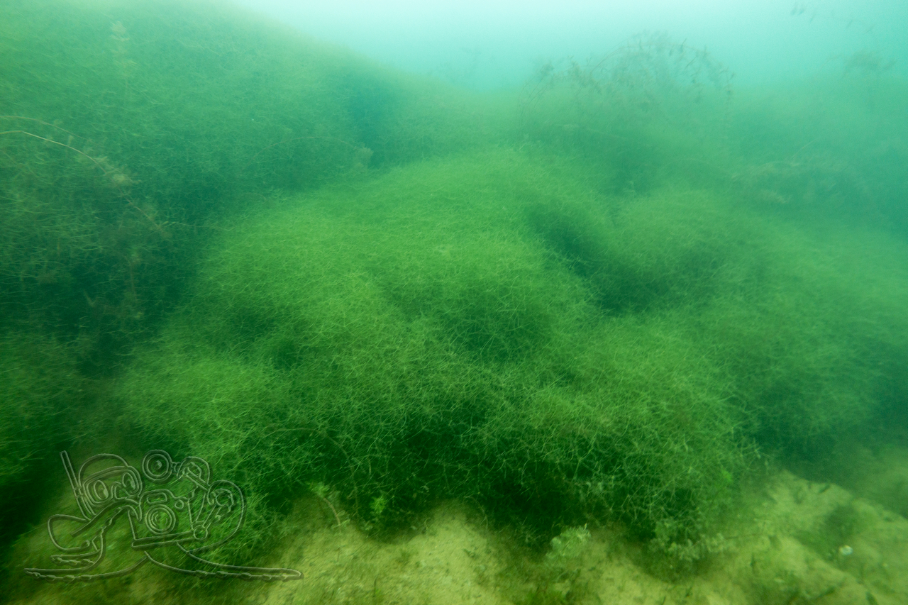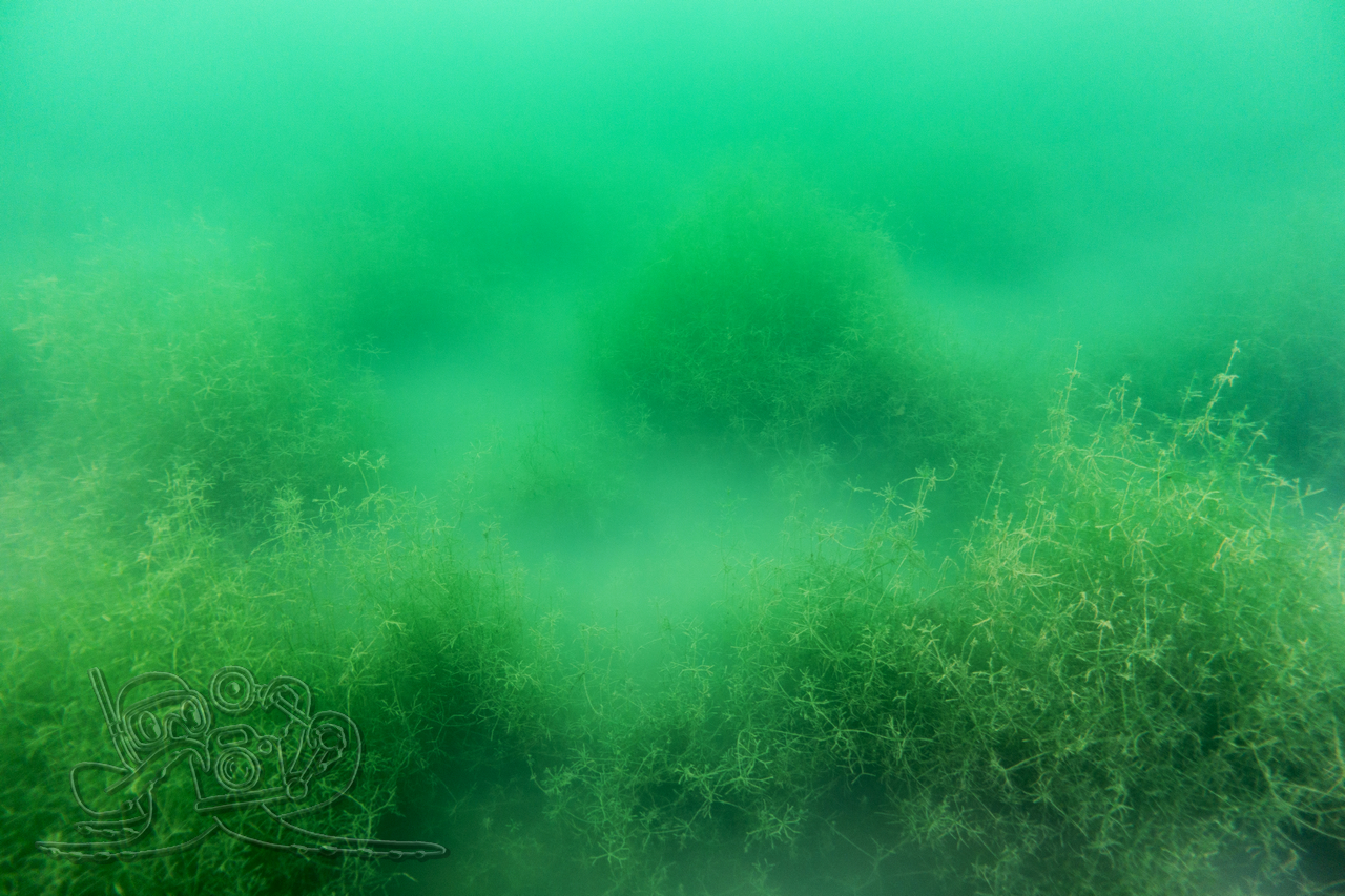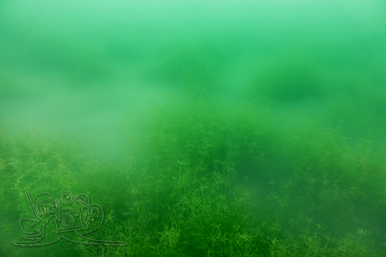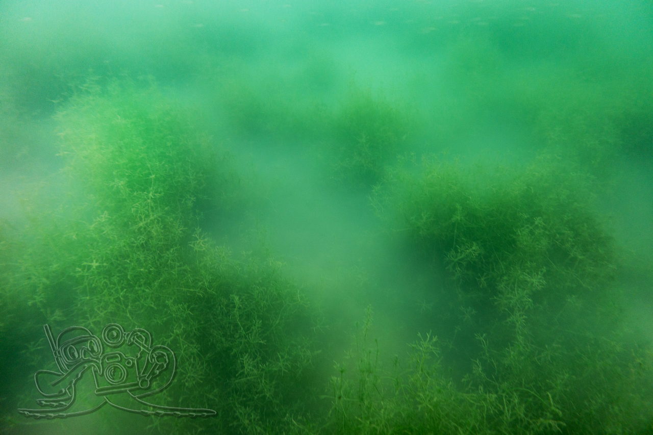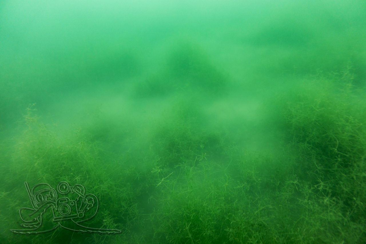 Heute sind wir in den Moritzsee und zugleich in den November eingetaucht. Wir starteten mit einem Sicht-Check. Dem Transekt folgend, mussten wir es mangels Sicht alsbald tasten. Ab 16 Meter Tiefe war Schluss mit dem Ausblick. Dafür sahen wir bei 16,1 Metern im Schein der Lampe noch Characeen und notierten eine für den See stolze Untere Makrophytengrenze. Uns zog es rasch wieder aufwärts. Bald empfingen uns grüne Wiesen mit Armleuchteralgen, die aus neblig-weißen Wolken ragten. Dazwischen huschten Schwärme kleiner Barsche und einzelne Rotaugen umher. Etwas höher besserte sich die Sicht leicht. Größere Barsche und halbstarke Hechte empfingen uns im Pflanzenbestand. Über die die weitreichenden Polster der Sternarmleuchteralgen kehrten wir schließlich ans Ufer zurück.