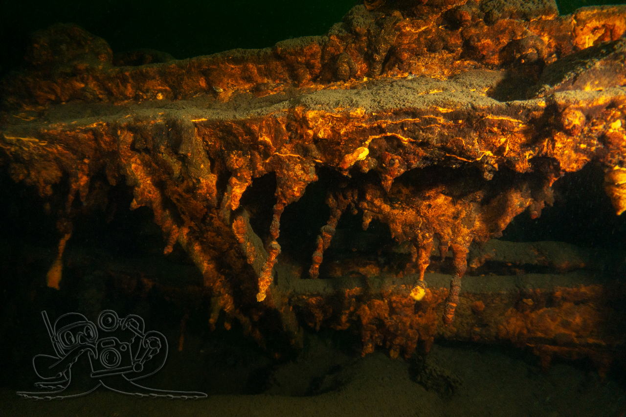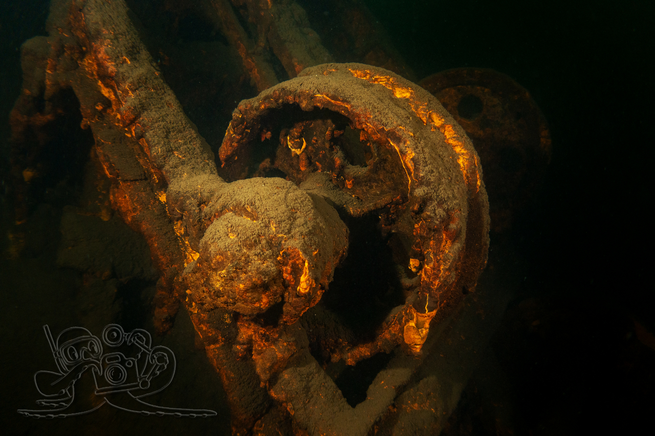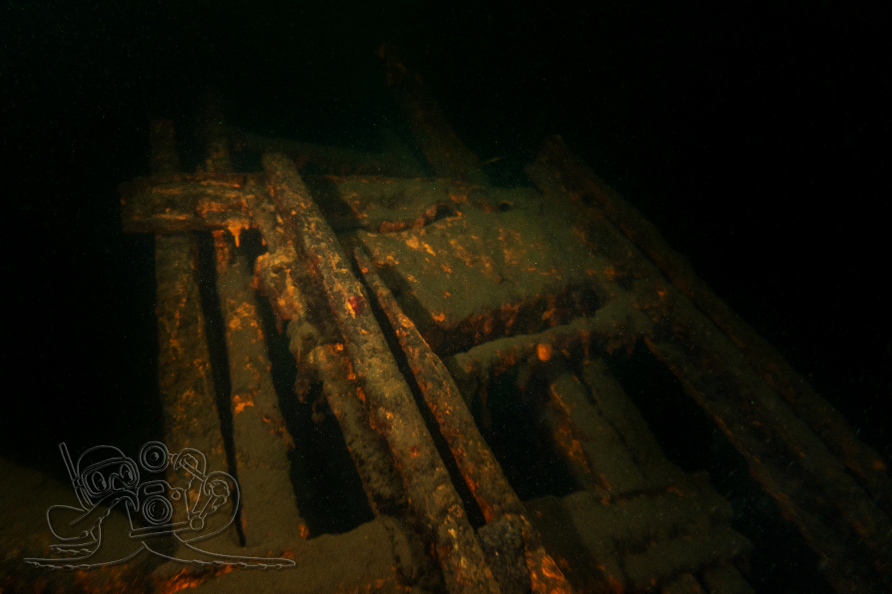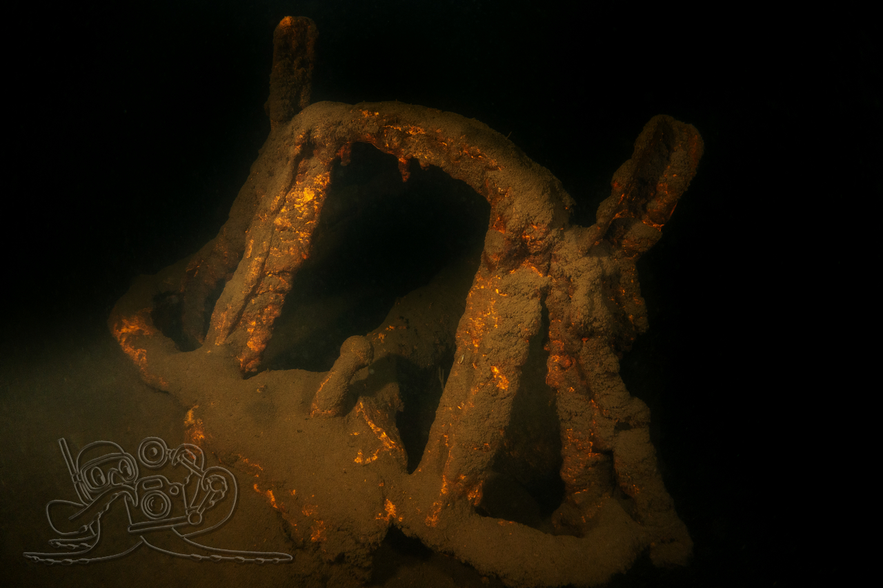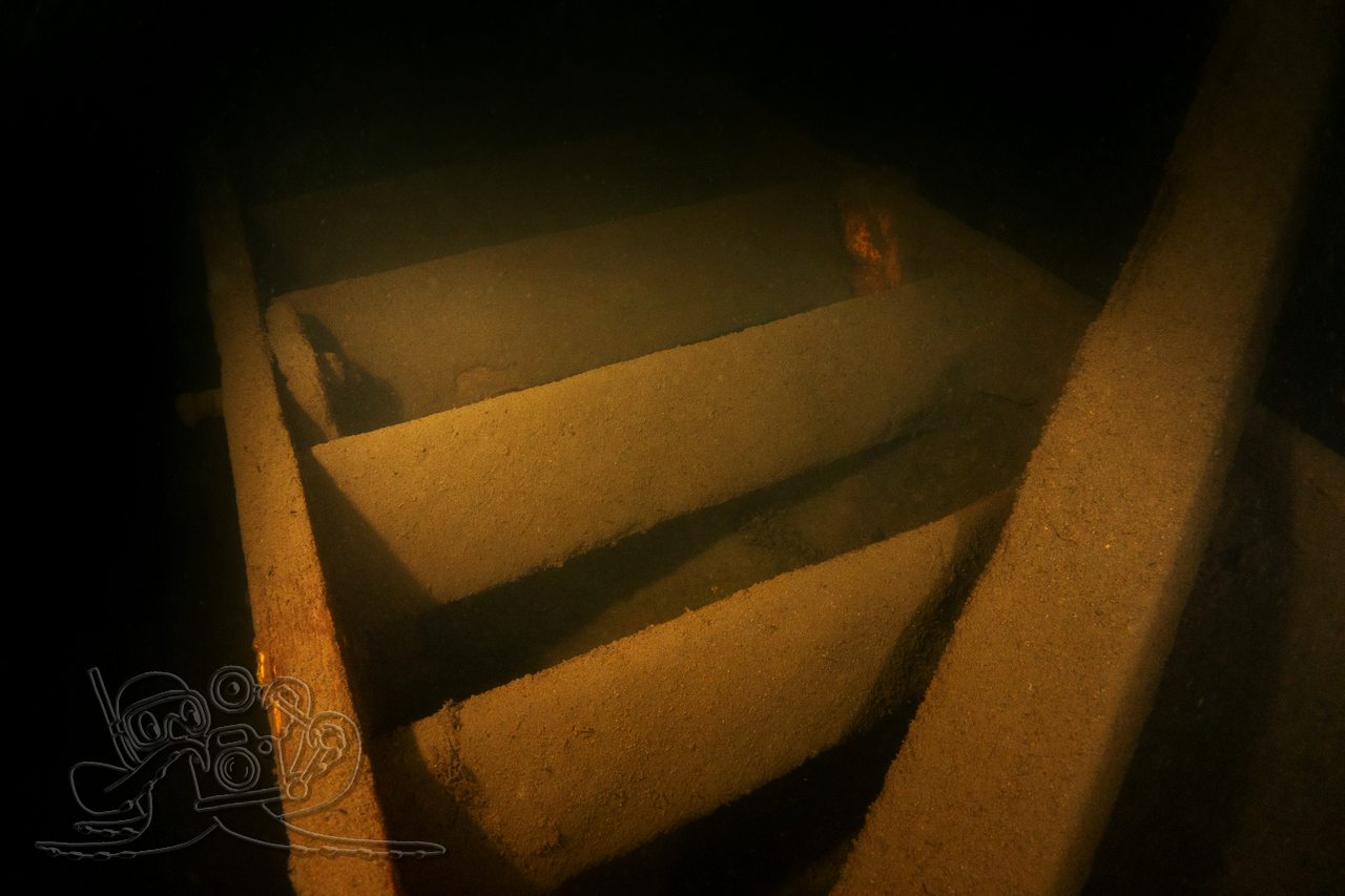 Dennoch hatte sich die Sonne schließlich hinter Wolken versteckt. Draußen war es dennoch hell, aber unter Wasser änderte sich das alsbald. Der Haselberg-Steinbruch hatte sich nahezu durchgängig in sein graues Nebelkleid geworfen, welches das rare Licht erfolgreich abwehrte. So wurde aus unserem Tauchgang rasch eine Dämmerungs-, alsbald auch eine Nachttauchrunde, wenngleich die Uhr etwas anderes sagte. Scheinbar tummelten sich aber umso mehr Fische im neblig-grauen Nass: Zahlreiche Karpfen, Barsche und Kleinfische begegneten uns in allen Tiefen. Vor allem Hechte zeigten sich in jeder Größe: vom fingerstarken Frischling bis zum großen Platzhirsch konnten wir sie alle entdecken. Bei unserem Abstecher in die Tiefe des Kessels entdeckten wir leider erneut einen kleinen Marmorkrebs auf dem lockere Sediment. Als invasive Art und zugleich gefährdend für unsere regionalen Edelkrebsbestände werden wir den Fund wieder an die zuständigen Behörden melden.