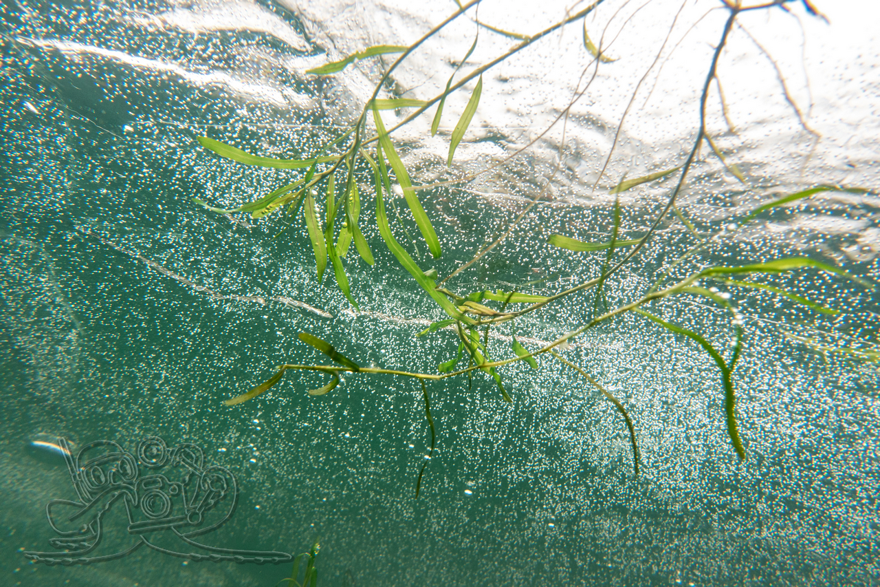 Ob es tatsächlich „Winterschlusstauchen“ war, werden natürlich erst die nächsten Wochen zeigen. Doch bei 8 °C Lufttemperatur und andauerndem Regen schwand das dünne Eis, dass sich auf dem Kiessee bei zuletzt – 8 °C wieder ausgebildet hatte, zusehends. Der Wind trieb die feinen Eisflächen munter über den See und sorgte für Schmuck am Ufer. So huschten wir noch einmal unter die Eisflächen, ehe die ihren Aggregatzustand wechseln konnte. Erwartungsgemäß präsentierte sich der Eis ausgesprochen trüb. Auch unsere Transekte hatten über den Winter gelitten und müssen in Kürze wiederhergestellt werden.