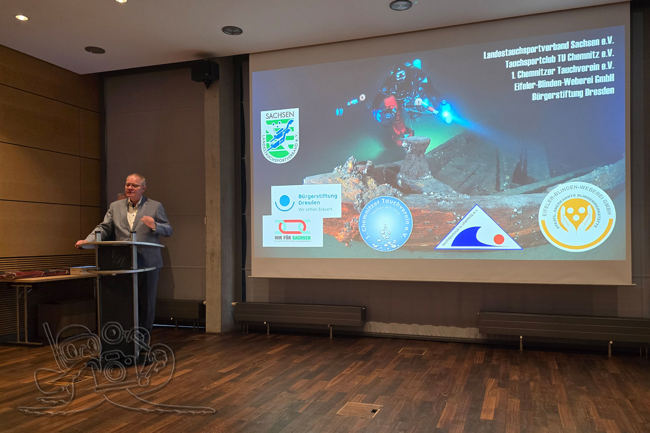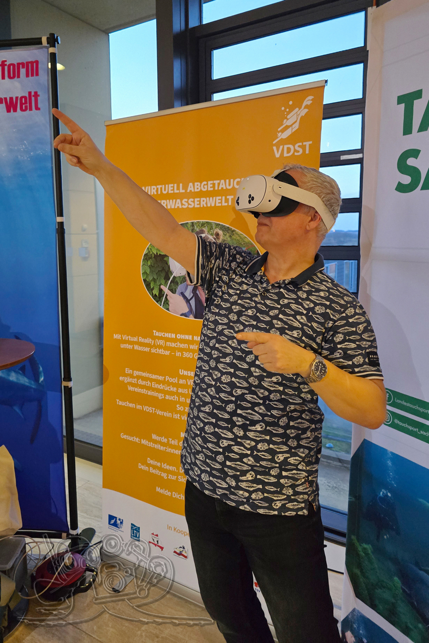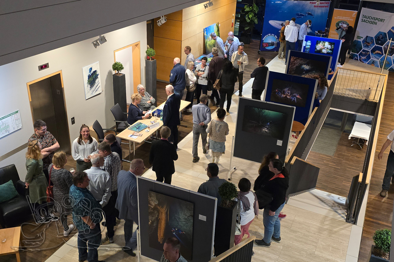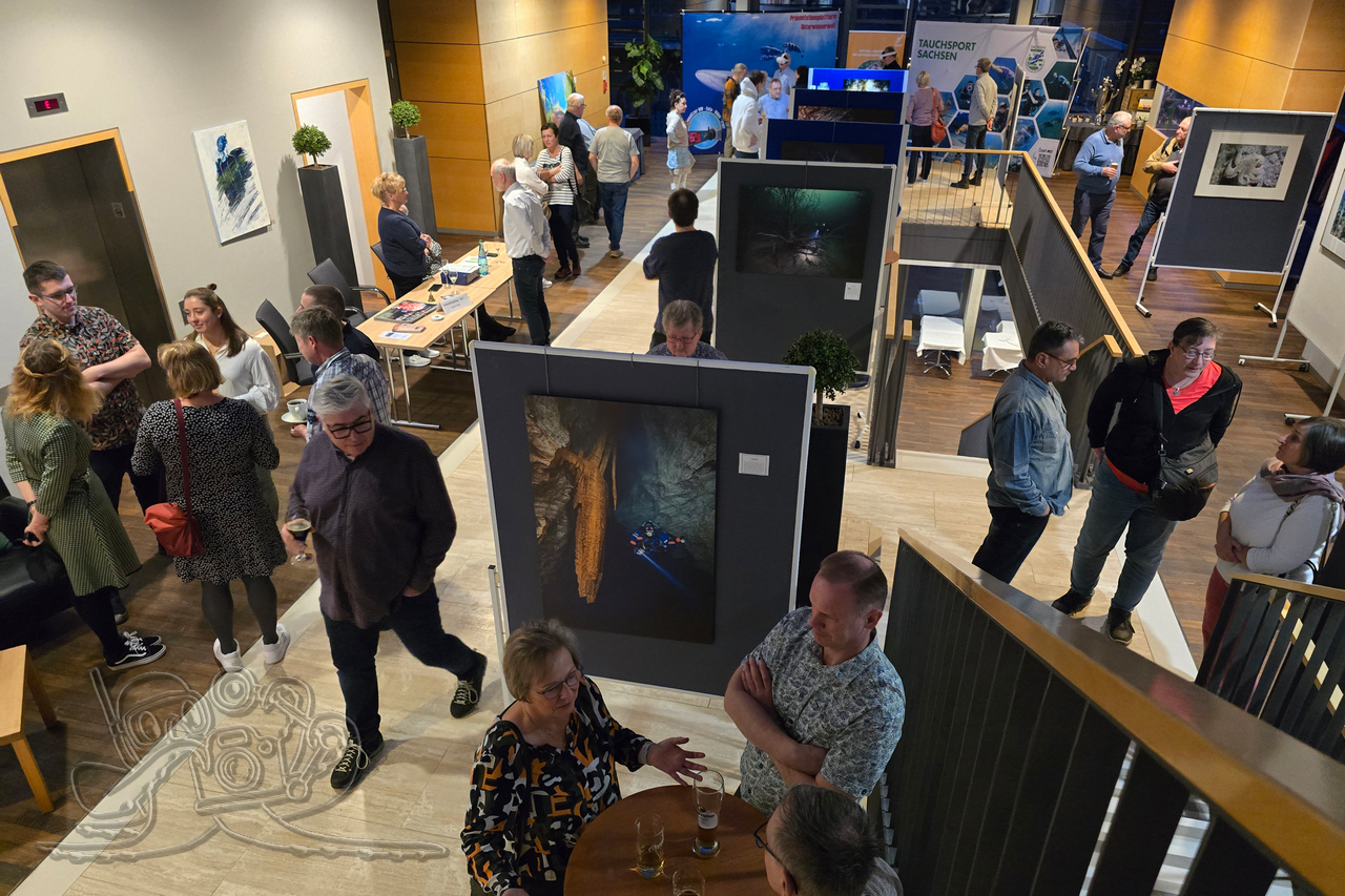 Damit reihten sie sich in die rekordverdächtige Zahl von knapp einhundert Gästen ein, die zum inzwischen 19. Chemnitzer UW-Foto-Video-Treff nach Lichtenwalde gekommen waren. Das Orga-Team mit Wolfgang Zock, Jörg Böttcher und Falko Schleif hatte auch in diesem Jahr wieder hochkarätige Referenten gewinnen können, die mit Fotos und Videos auf eine Unterwasser-Weltreise einluden. Die acht Beiträge führten uns dabei nach Galapagos, den Baikalsee, Malaysia, Grönland, Bali, die Philippinen, Österreich und auch heimische Gewässer. Der ohnehin kurzweilige Abend gewann in den Pausen zusätzlich durch viele anregende Gespräche unter den anwesenden Unterwasserfoto- und -videografen sowie auch durch Ausflüge per VR-Brille in die bunte Unterwasserwelt. Herzlichen Dank allen Beteiligten – wir freuen uns bereits auf das Jubiläumstreffen im nächsten Jahr!
