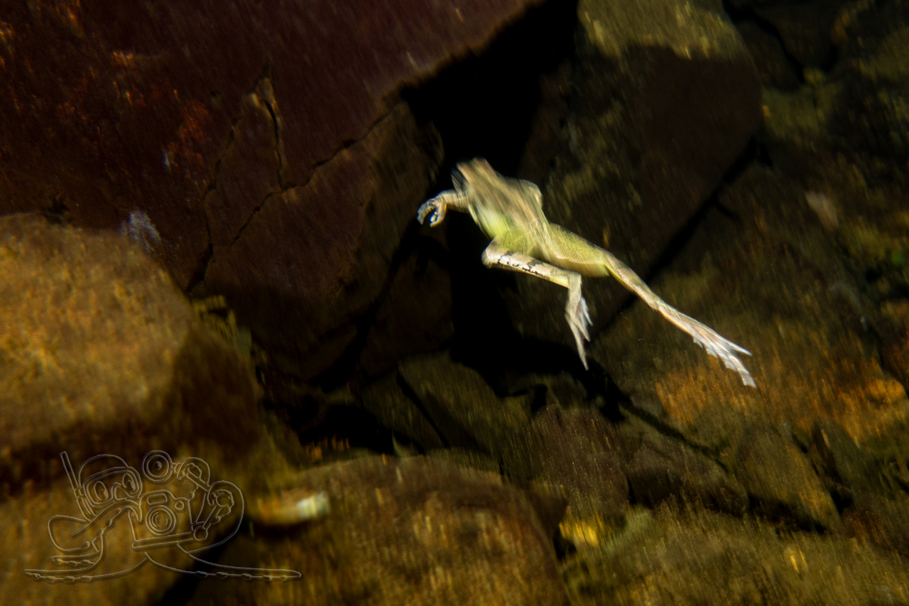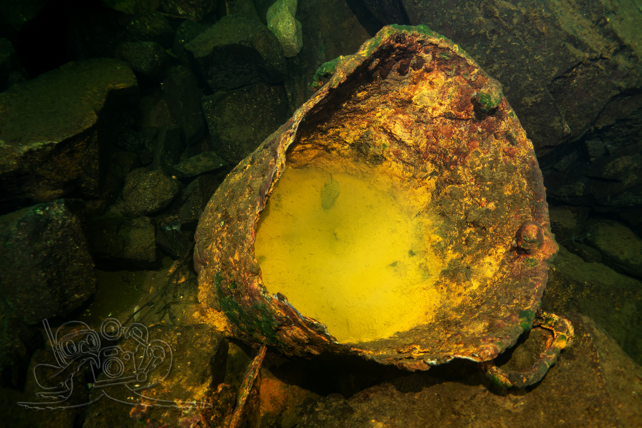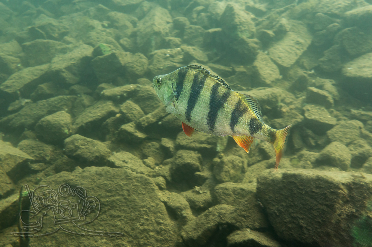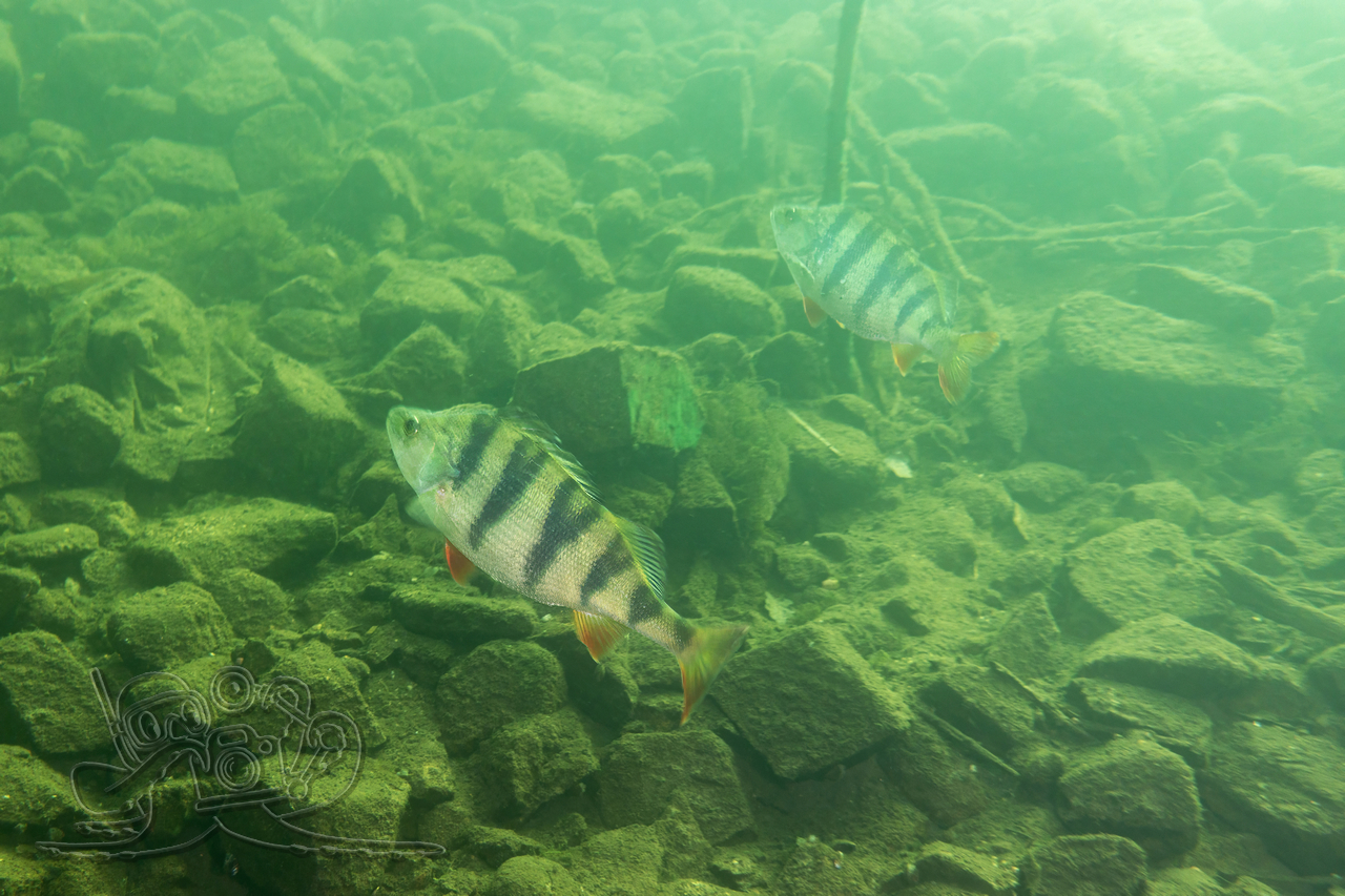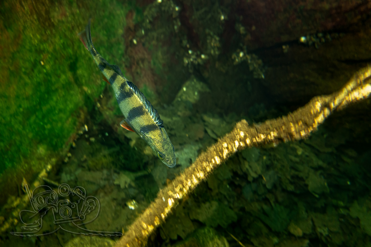 Die Sonne hatte die Luft erst auf 6 °C erwärmen können. Das Wasser bot im oberen Bereich die gleiche Temperatur und vermied damit Kontraste. Wir drehten eine zumeist oberflächennahe Runde. Die Sicht war für die Jahreszeit recht gut, aber außer ein paar Karpfen begegneten uns nur Rotaugenschwärme, ein einjähriger Hecht sowie zwei ältere Flussbarsch-Damen. Schwimmfüße unter Wasser zeigten uns an, dass inzwischen die Graugänse am Steinbruch eingetroffen waren. Wirklich überrascht hatte uns aber ein besonderer Tieftaucher: Ein Grasfrosch schwamm putzmunter in bis zu 16 Metern Wassertiefe vor uns her. Hauptsache, er findet später auch den Ausgang aus dem Steinbruch.
