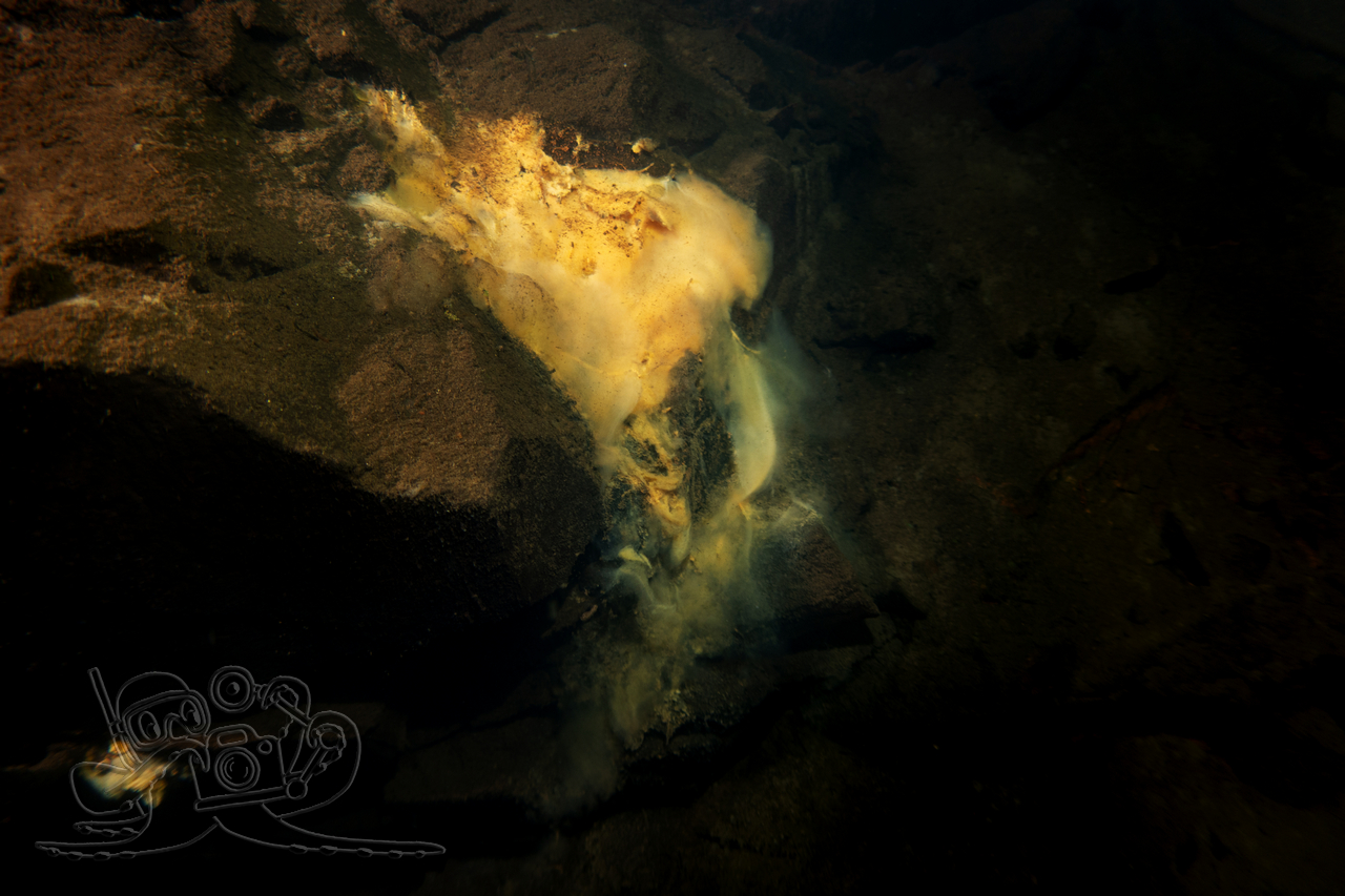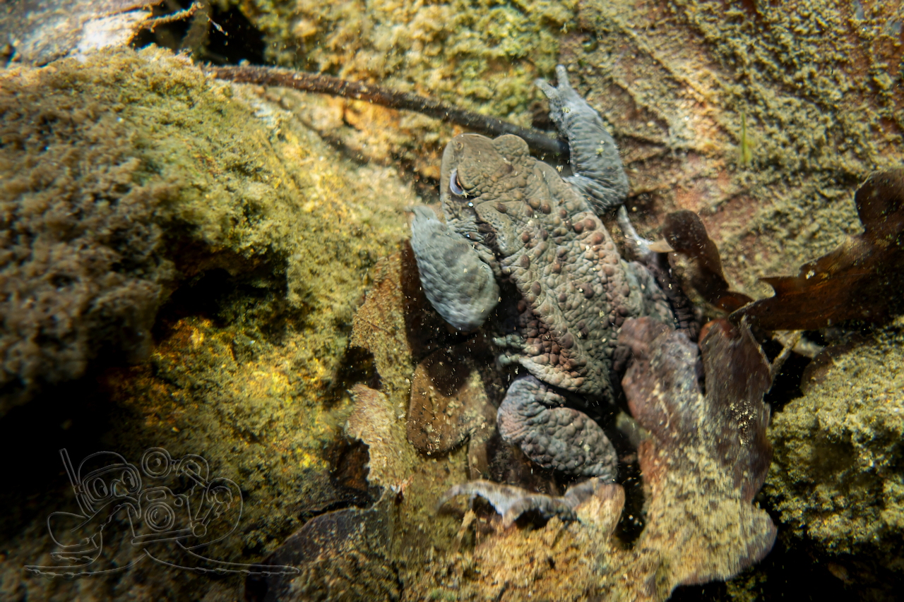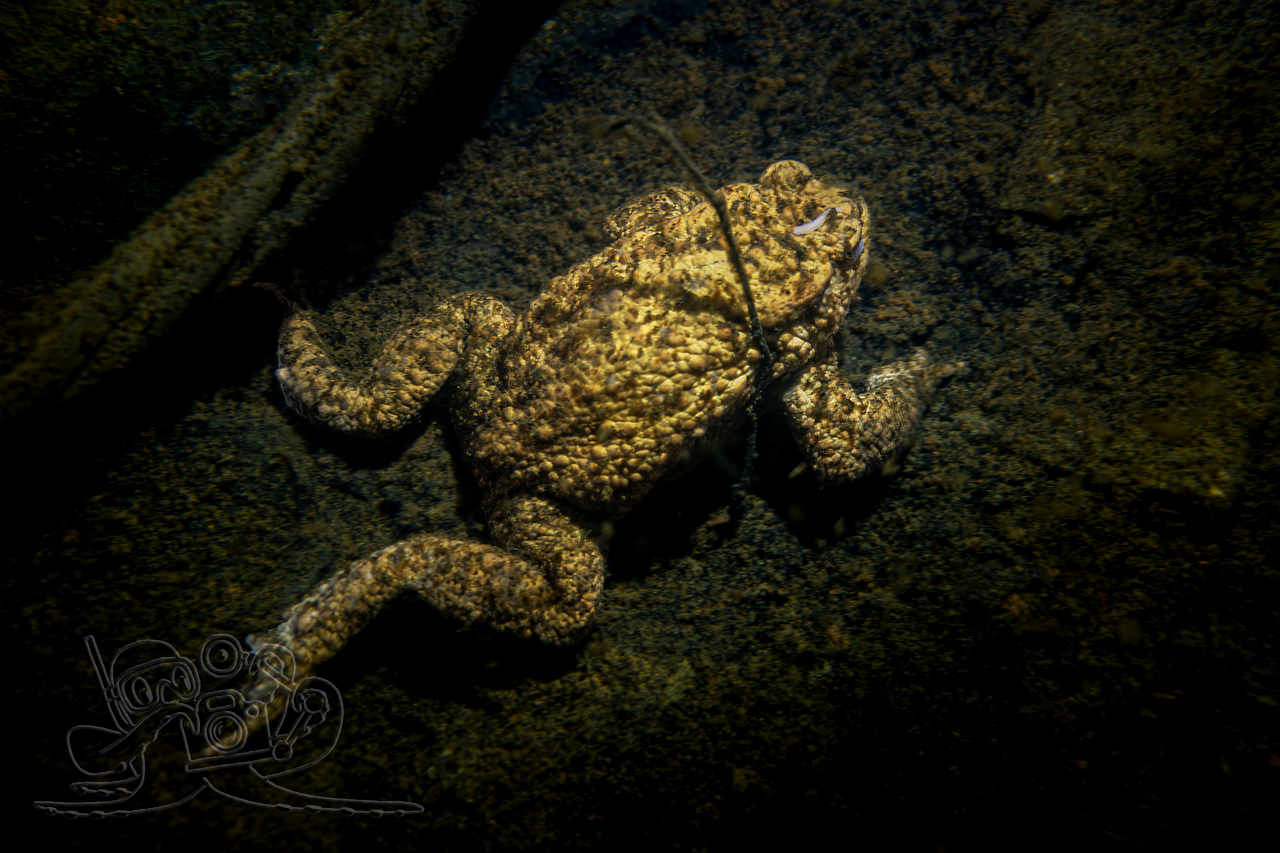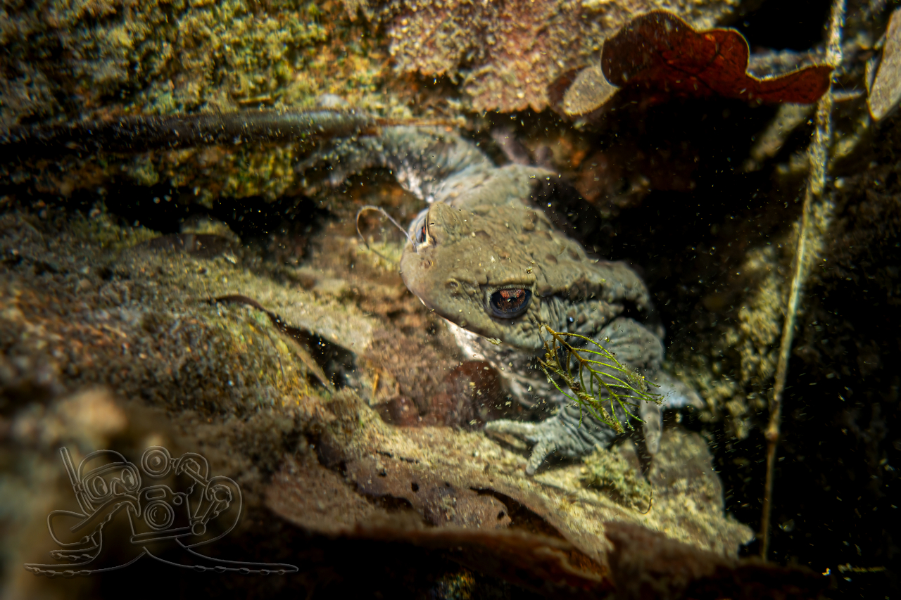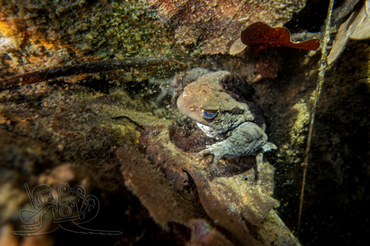 Die meiste Zeit verbrachten wir mit der vergeblichen Suche nach Fröschen, aber auch mit der Beobachtung zahlreicher Erdkröten. Die hatten sich in eigentlich zum Tauchen ungeeigneten Wassertiefen versammelt, um sich zu paaren und zu laichen. Zahlreiche Laichschnüre kündeten vom heranwachsenden, neuen Leben. Bei unseren zwei Abstechern in die tieferen Gefilde des sich weiter eintrübenden Steinbruchgewässers begegneten uns aber auch Tiere, die das Ende ihres Lebenszyklus erreicht hatten.