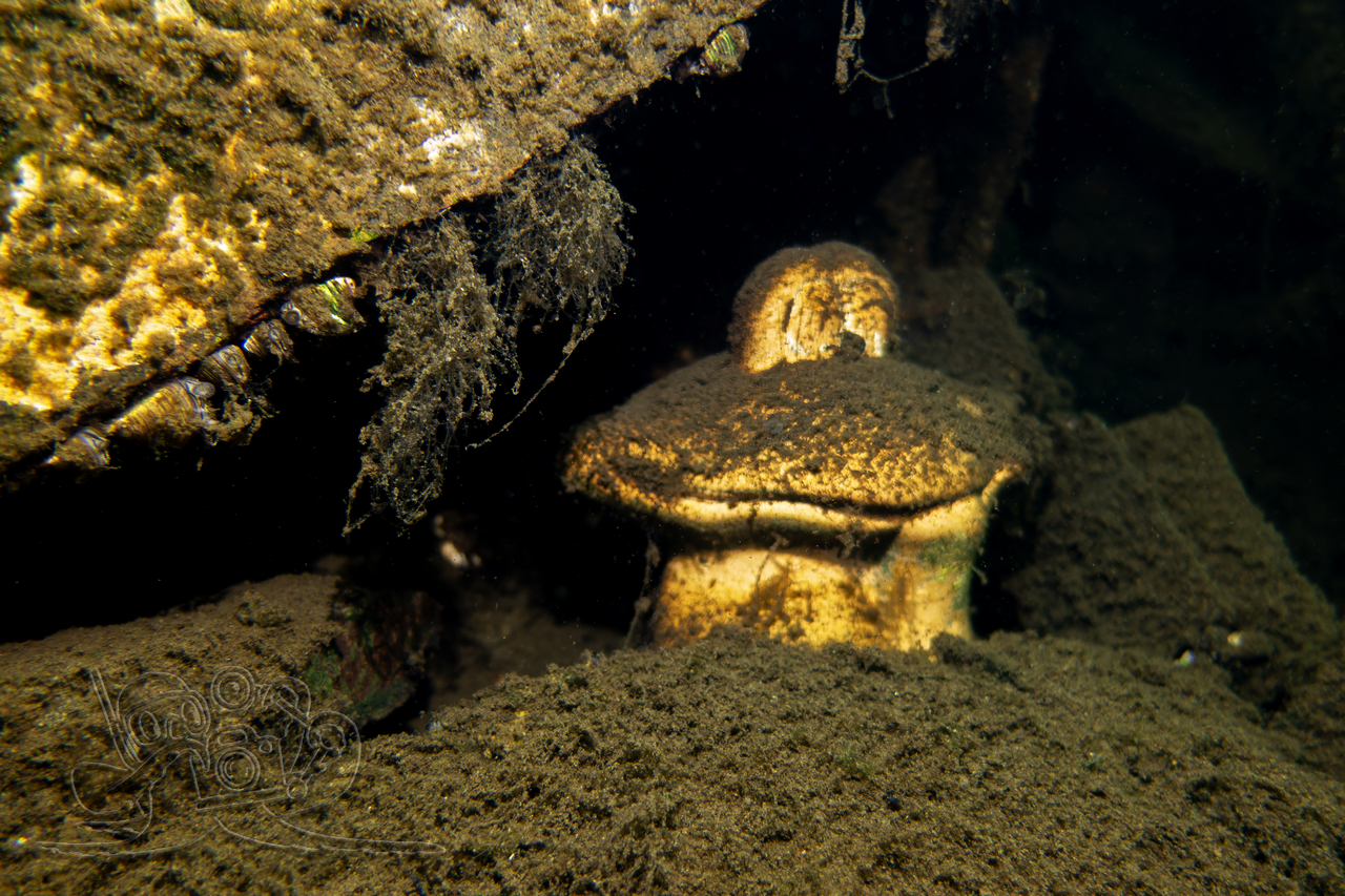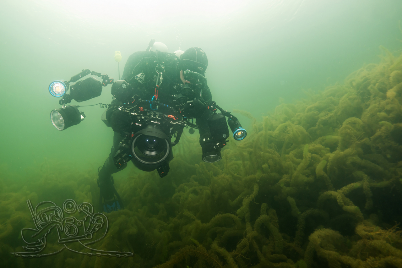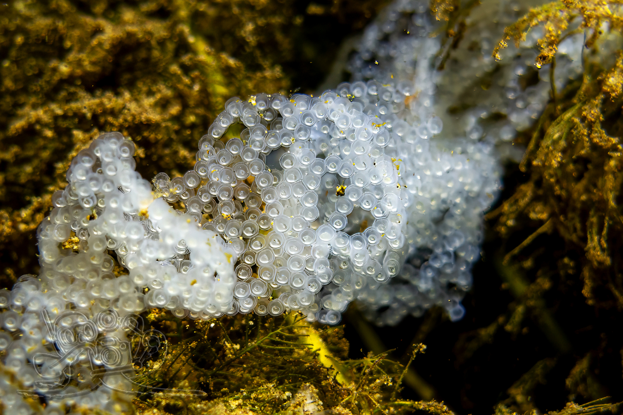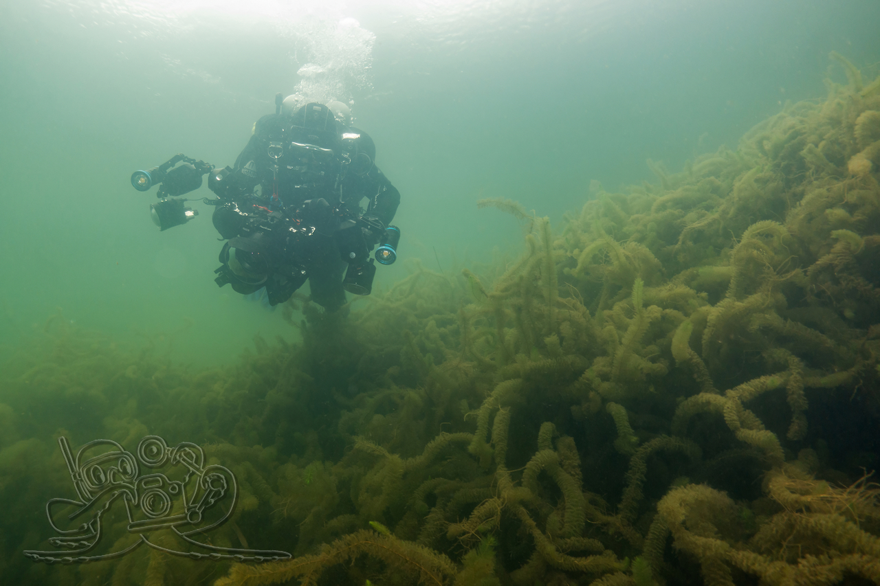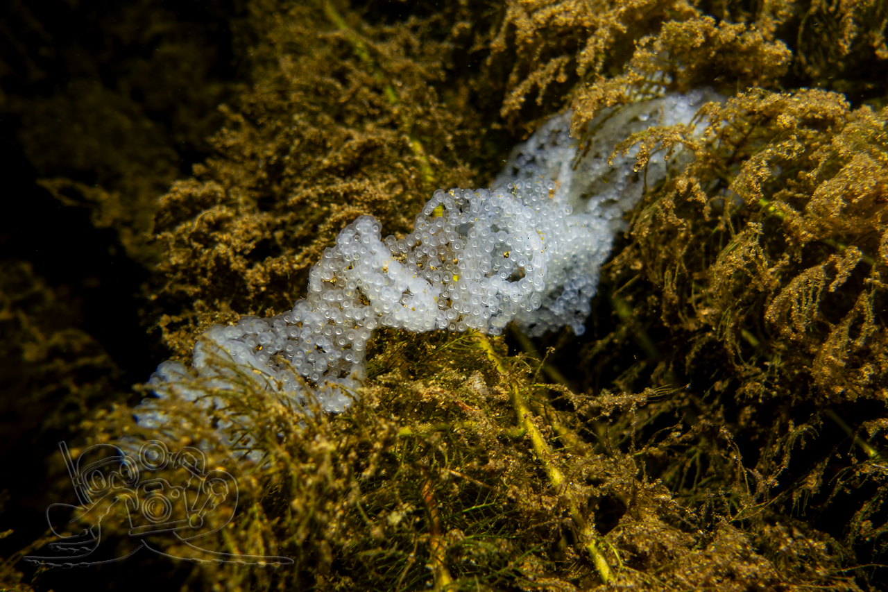 Bei dem nicht gerade einladenden Wetter blieben wir auch die einzigen Taucher in der Frühe. Die Temperatur nahe der Oberfläche hatte trotz zurückliegender Nachtfröste die 9 °C-Marke erreicht. Die Sicht allerdings hatte sich weiter eingetrübt, die wühlenden Karpfen leisteten fleißig ihren zusätzlichen Beitrag. Neben Kleinfischschwärmen von Rotaugen und Flussbarschen waren die Karpfen auch die ersten größeren Fische, die wir sahen. Heute konnte wir nur wenige und zumeist kleinere Hechte entdecken. Dafür überraschte uns ein erstes Flussbarsch-Laichband im Tausendblatt. Die Saison scheint trotz kühler Wassertemperaturen zu starten. Ein Abstecher zu Wartburg und Loren rundete die reichliche Stunde „Frühsport“ für uns ab.